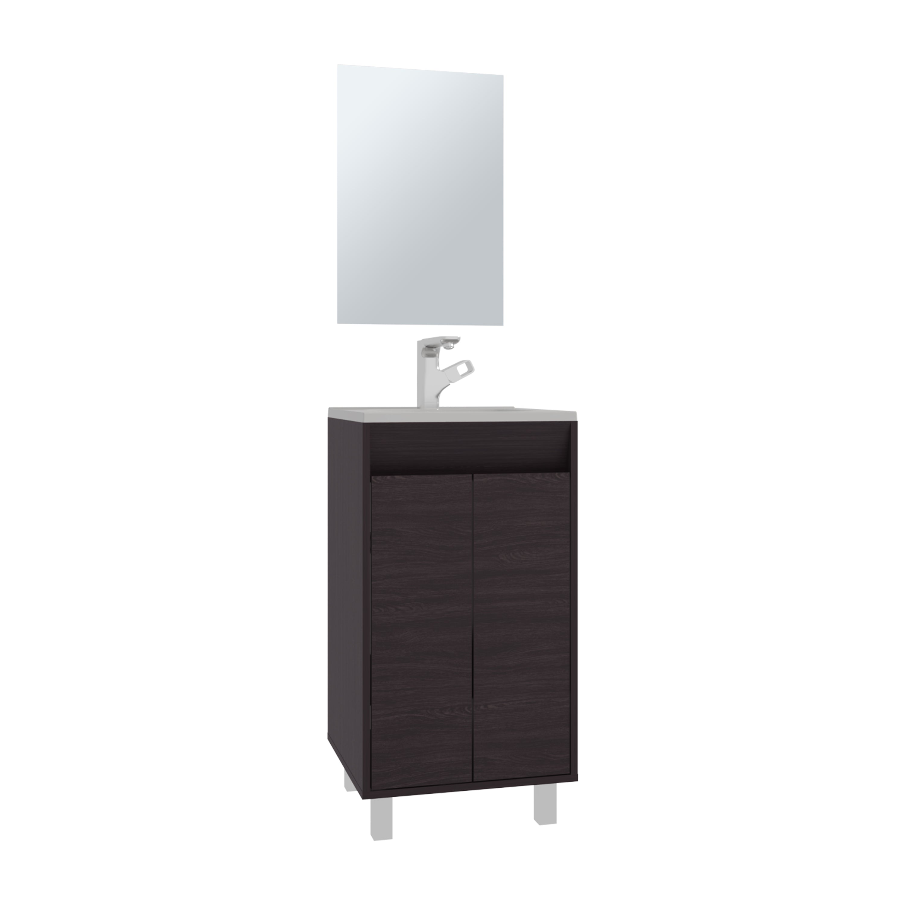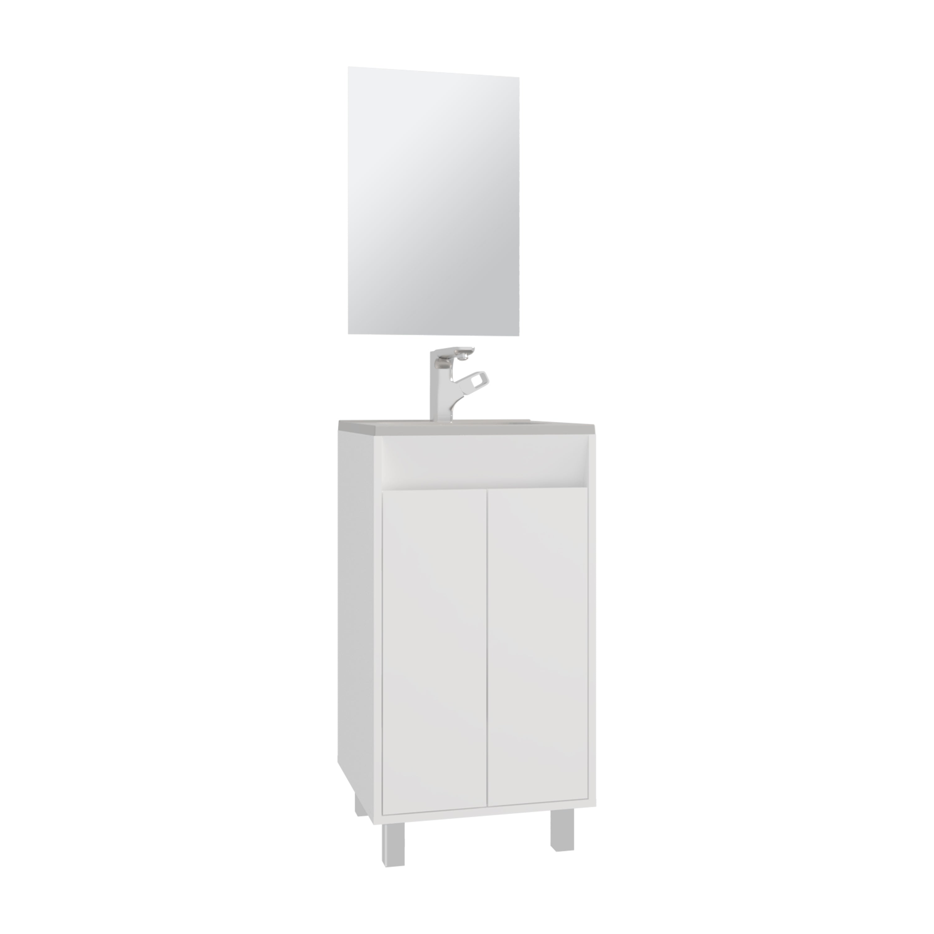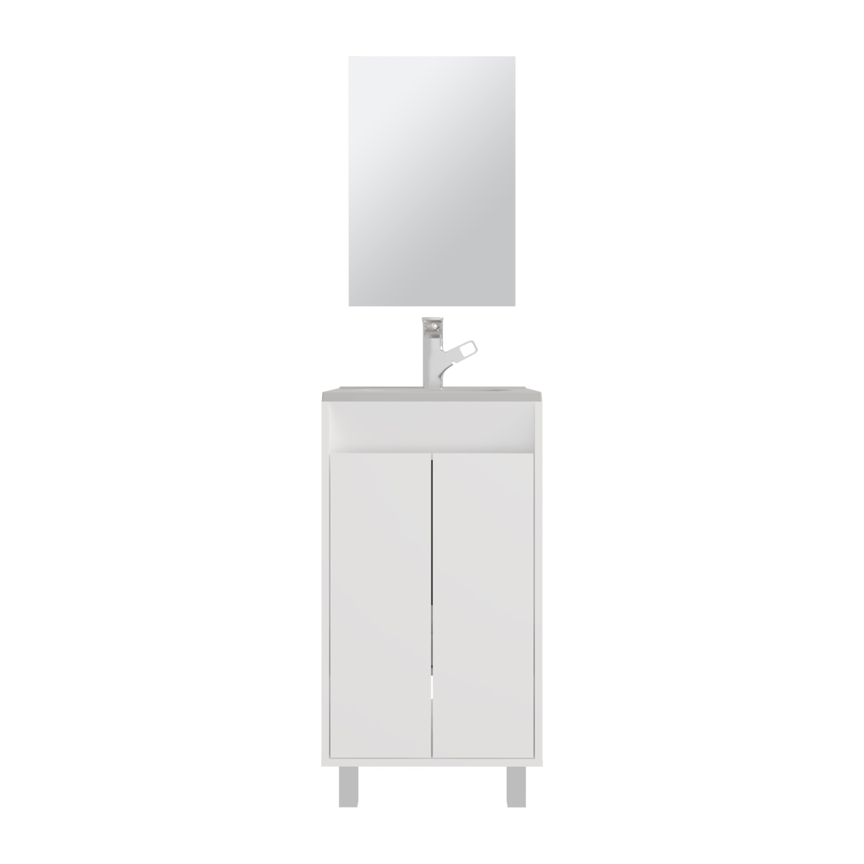 Ingold Bathroom Set, Cabinet with Sink + Mirror, 2 Doors, 4 Legs, 2 Shelves, 1 Mirror