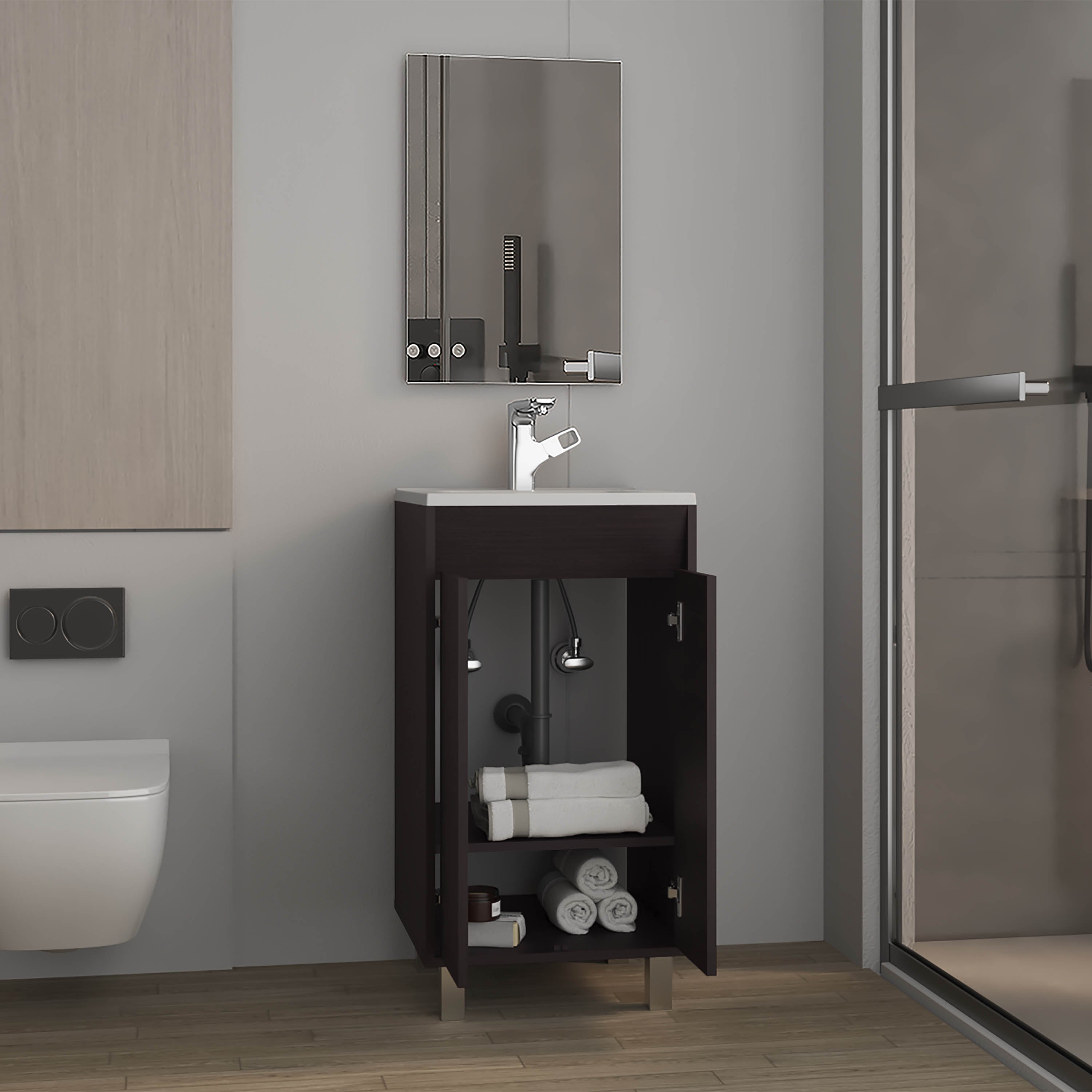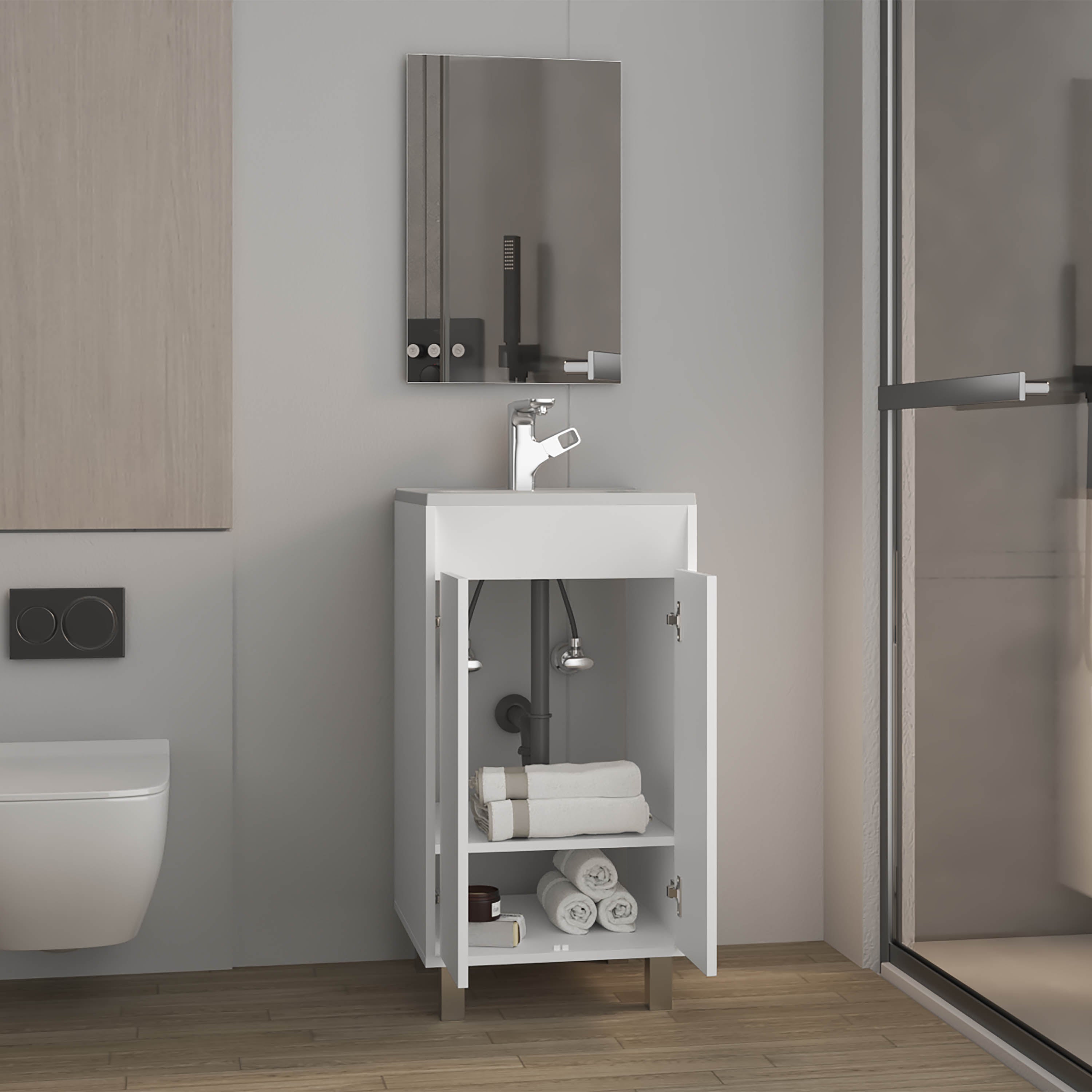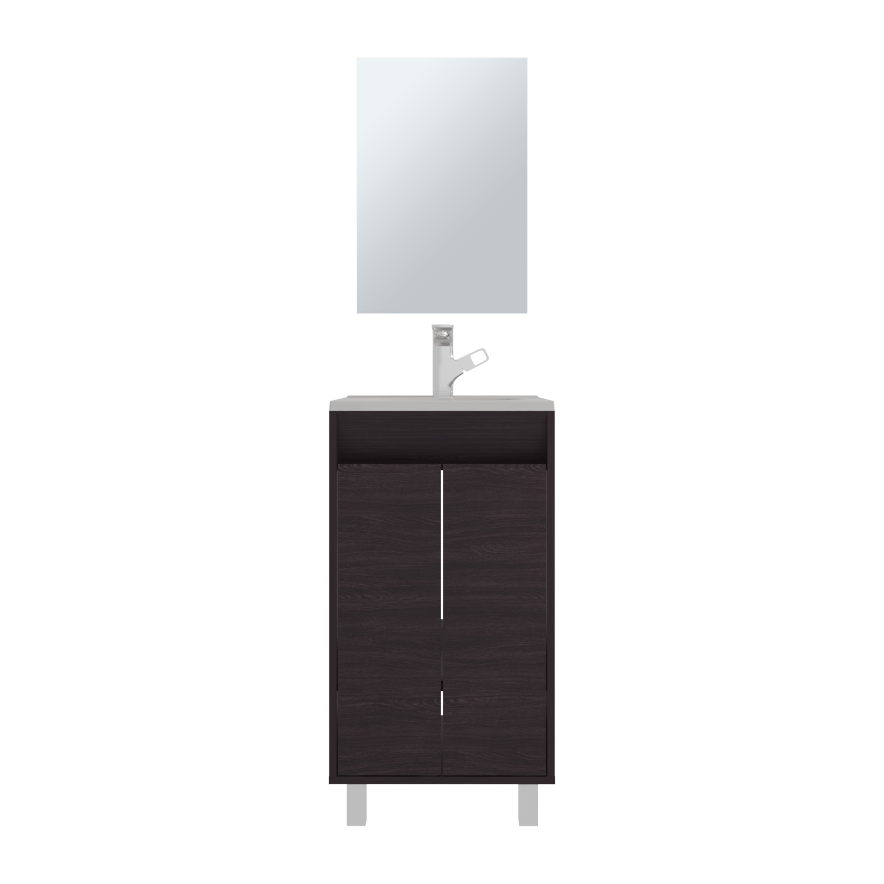 Ingold Bathroom Set, Cabinet with Sink + Mirror, 2 Doors, 4 Legs, 2 Shelves, 1 Mirror