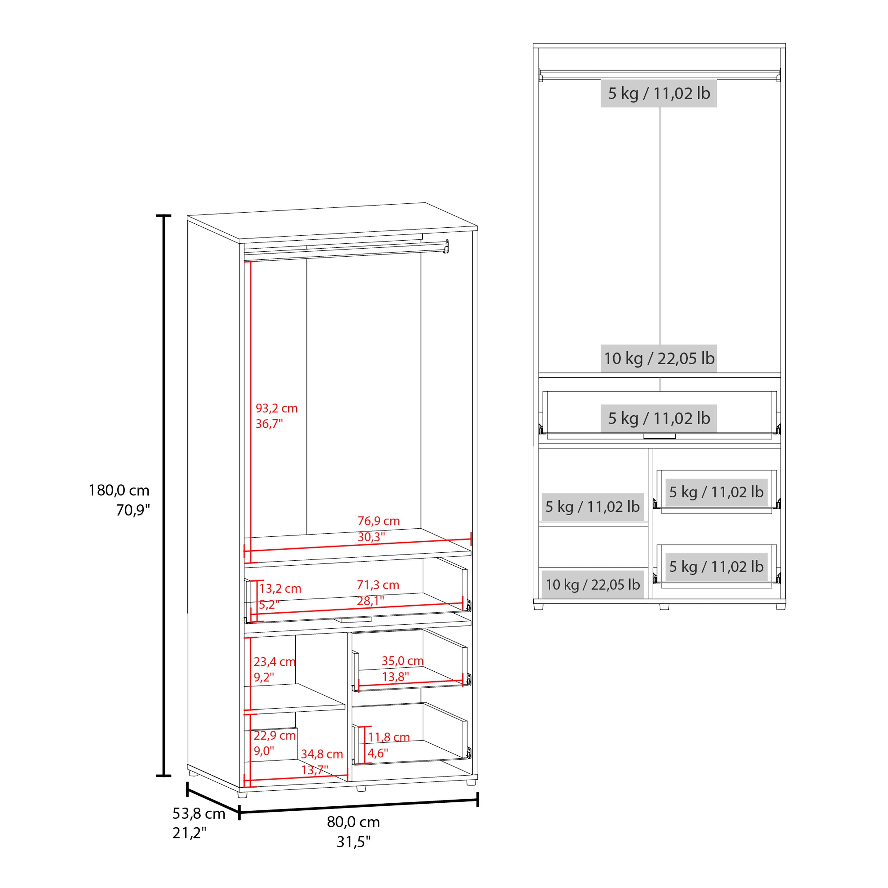 The Riverdale Armoire is a modern and functional storage solution for your bedroom, featuring two doors, three drawers, and two shelves. This spacious armoire is designed to keep your clothing and accessories organized, while its sleek design and sturdy legs add a contemporary touch to your space.
