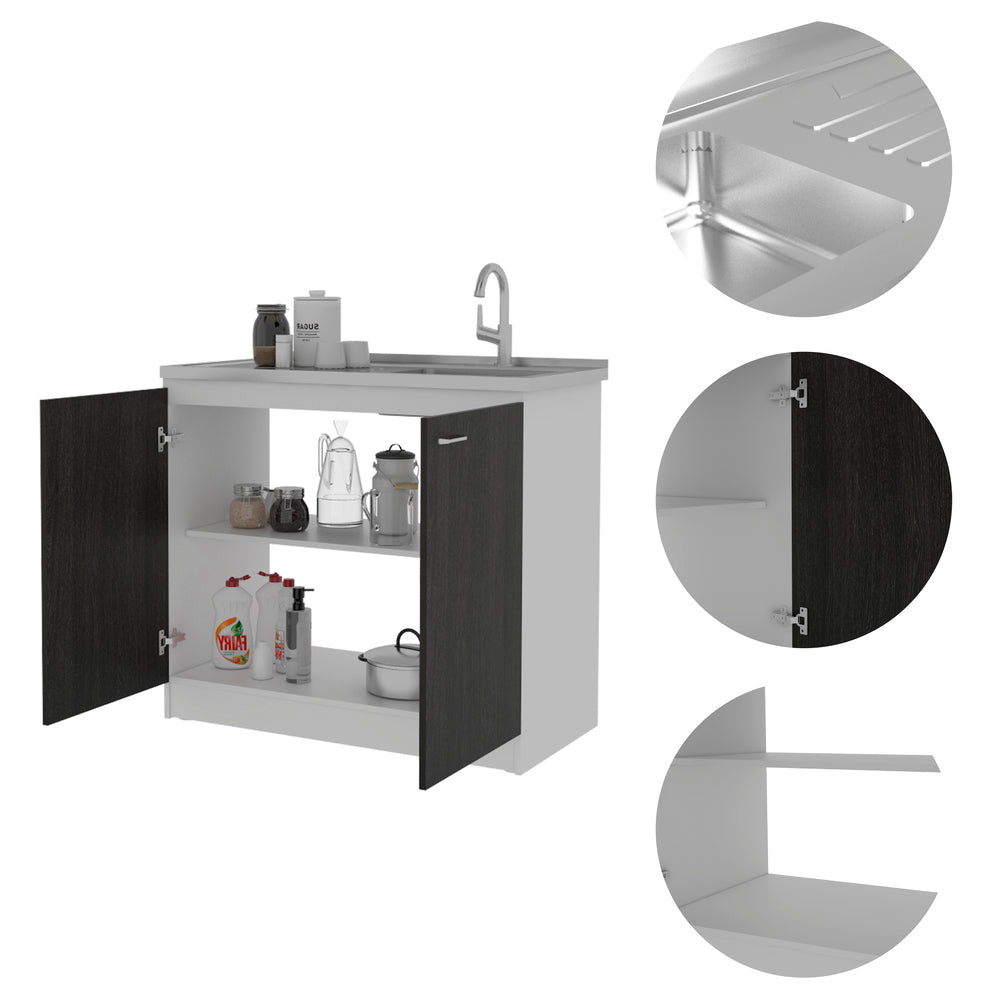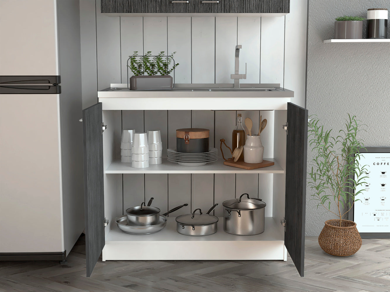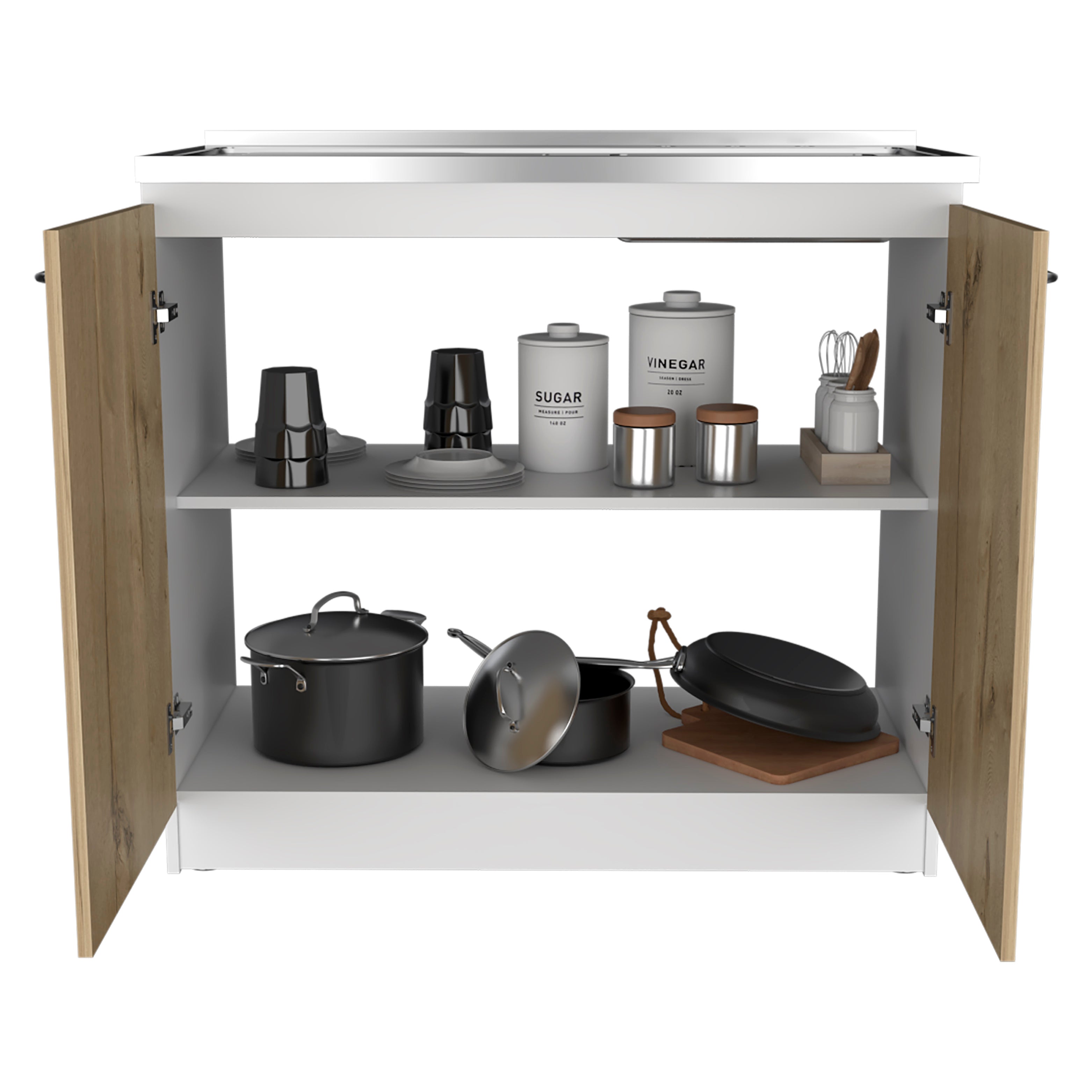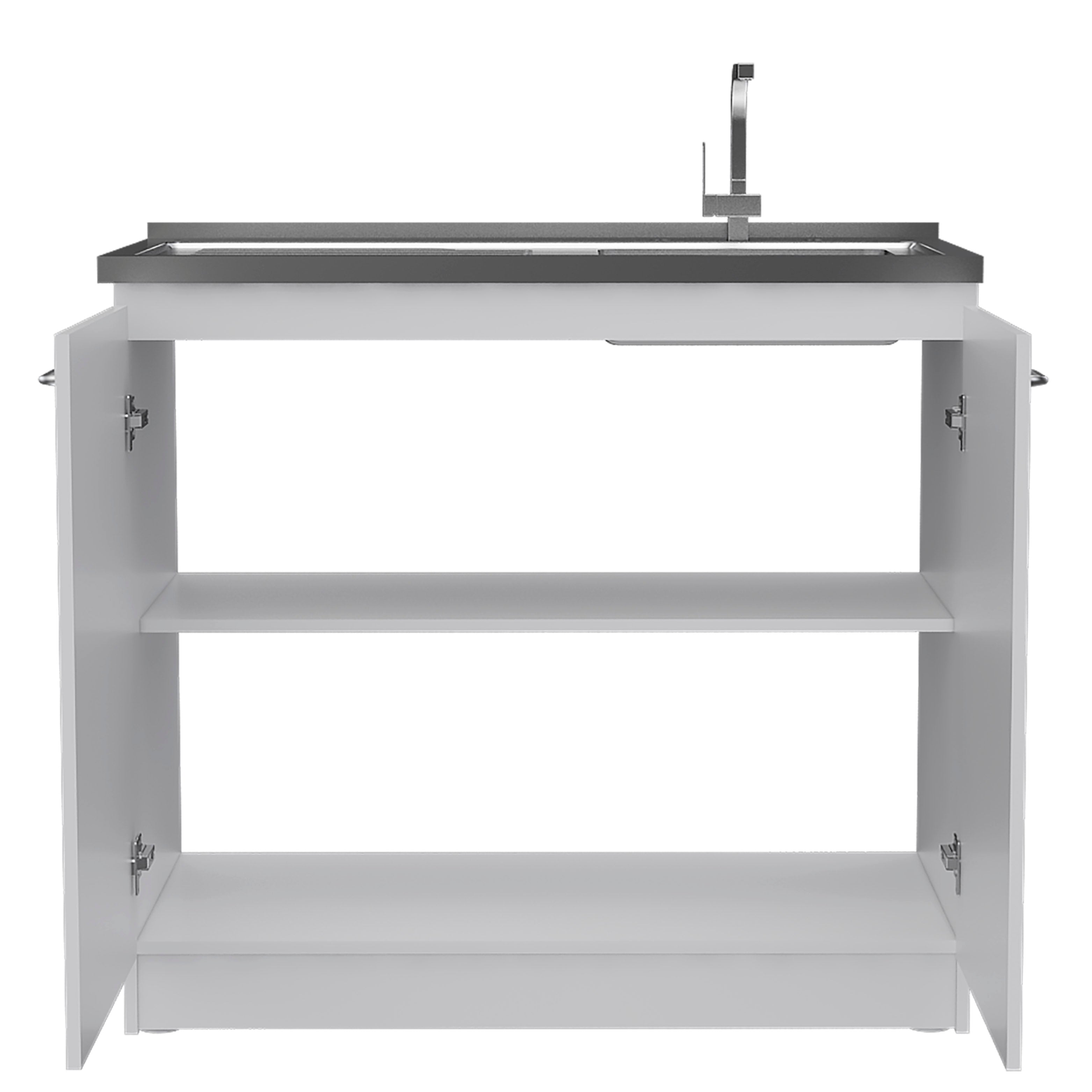 The Salento Base Cabinet with Sink strikes a rectangular silhouette, featuring two spacious shelves (38,4''W X 29,'' H)perfect for storing pots and pans or placing your daily kitchen utensils behind two cabinet doors that provide private storage. Features an integrated steel sink. Complete the Salento look with a matching Salento Wall Cabinet.*****FAUCET NOT INCLUDED****.