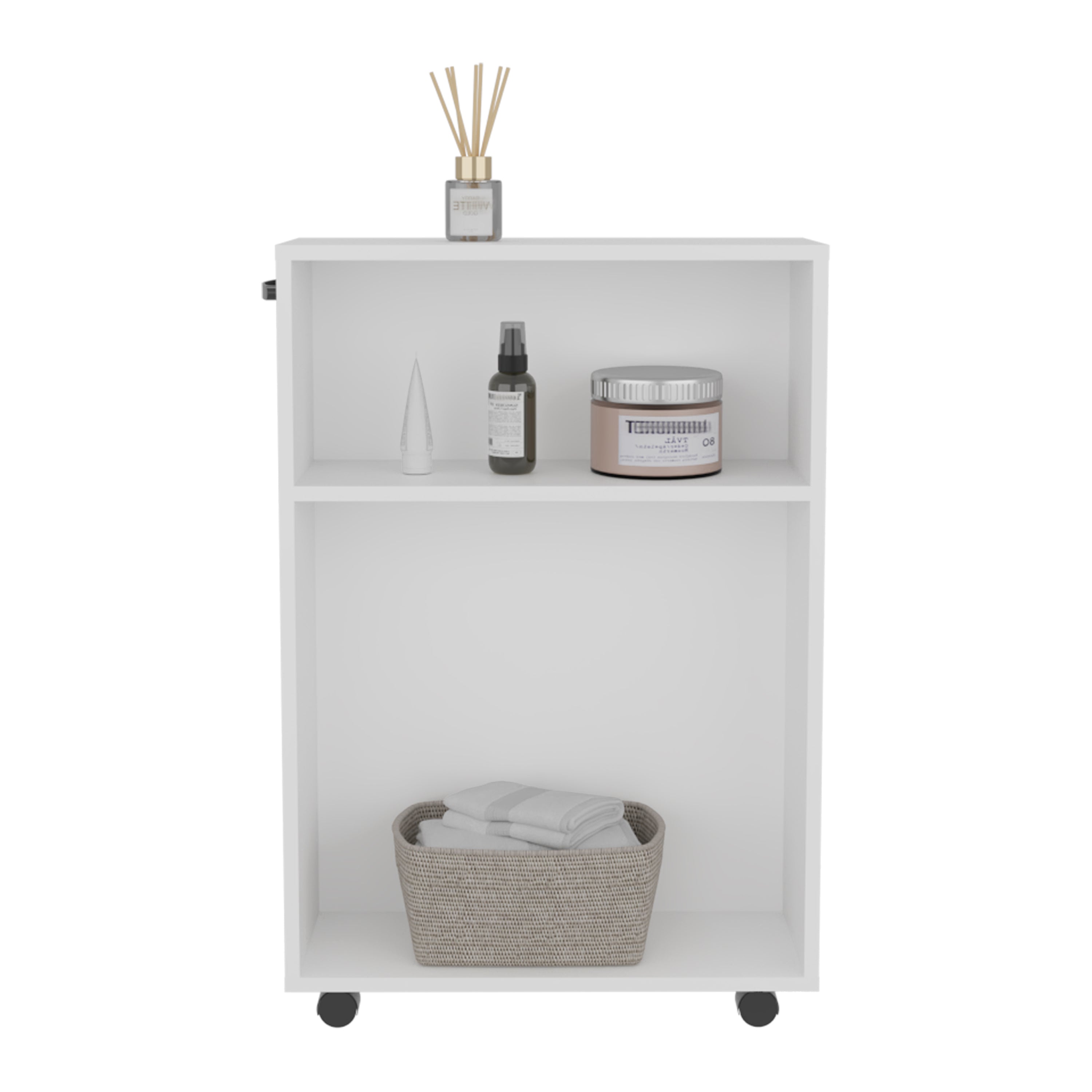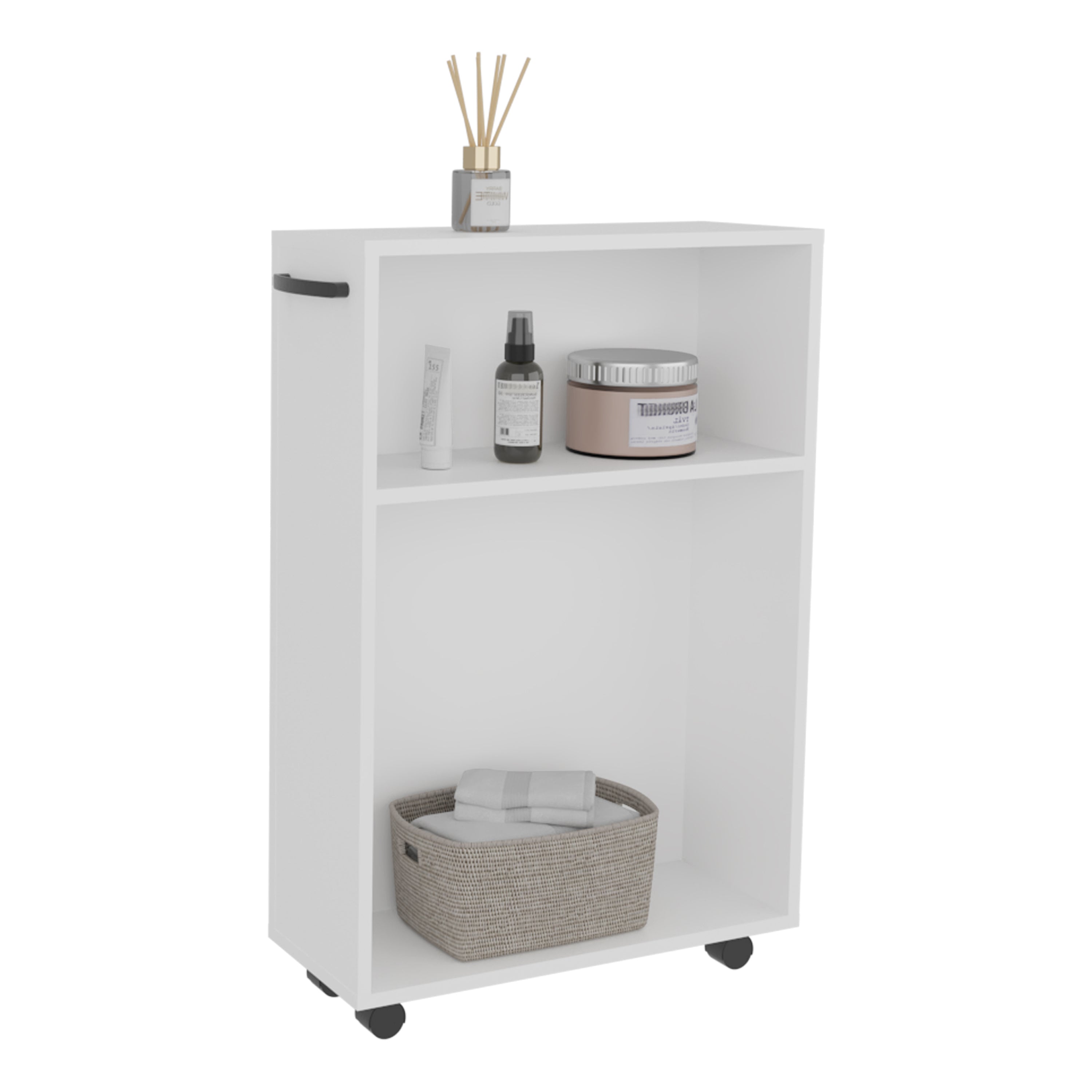 The Saltillo Storage Cart is a practical and versatile solution for your bathroom or any space in need of extra organization. Featuring 2 shelves and 4 wheels, this cart provides ample storage for toiletries, towels, or other essentials while offering easy mobility. Its sleek  finish blends seamlessly with various decor styles, adding a clean and modern touch to your space.