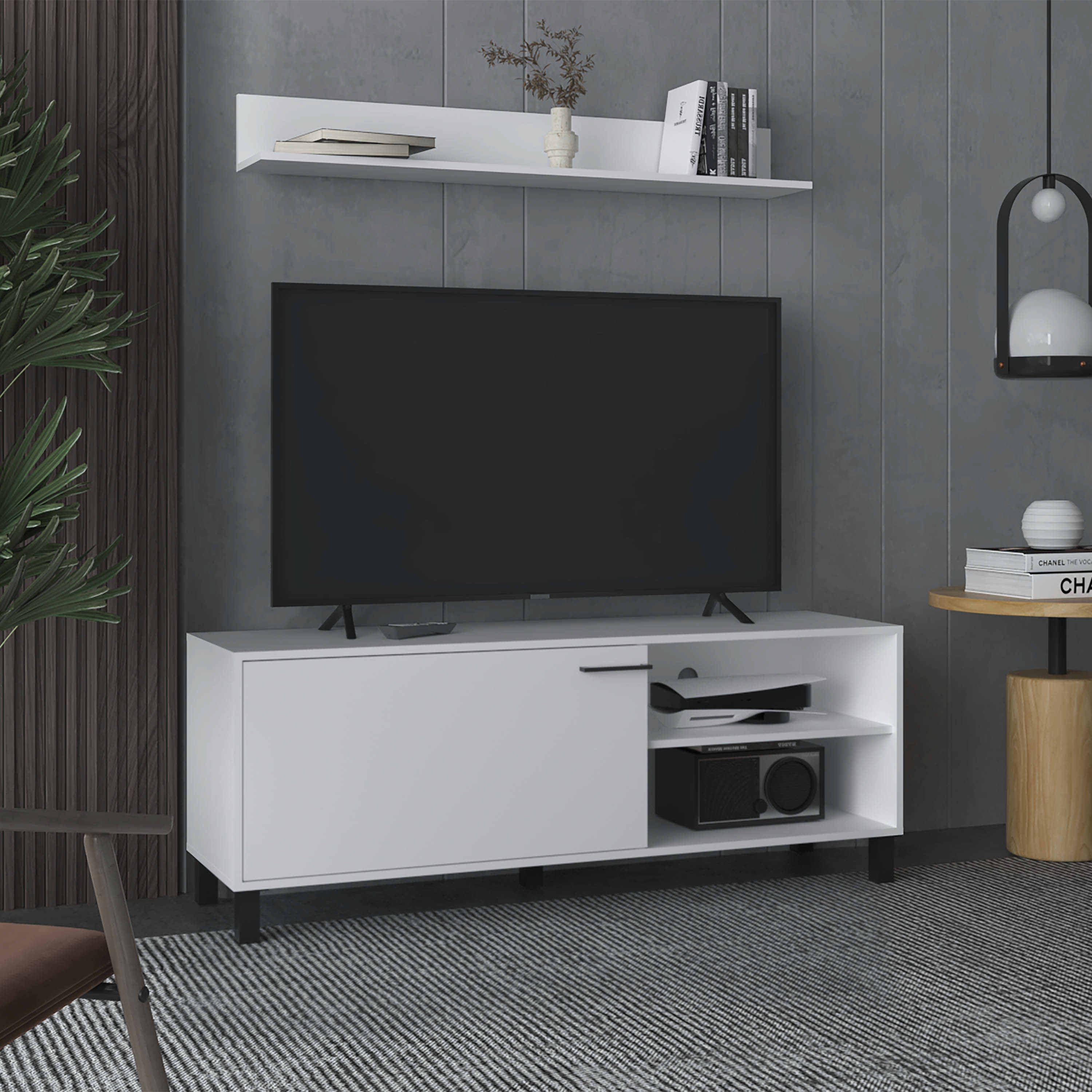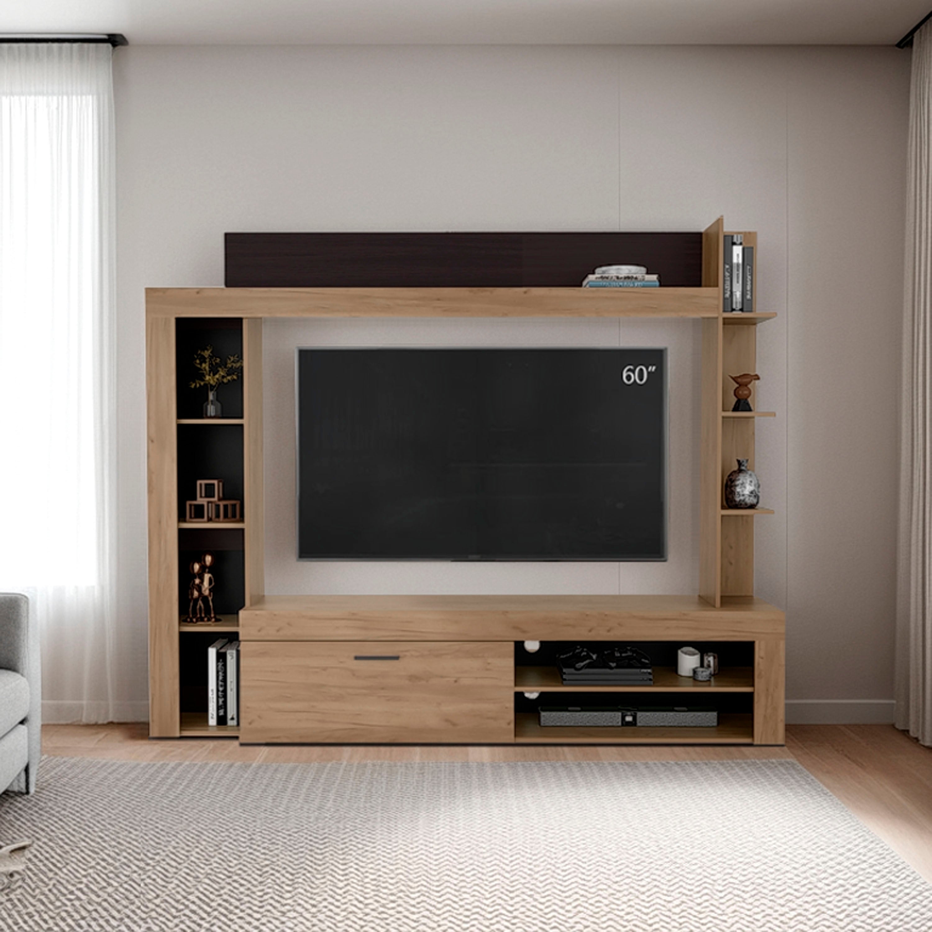 Novi Living Room Set, Tv Stand + Wall Shelf, 1 Door, 3 Shelves