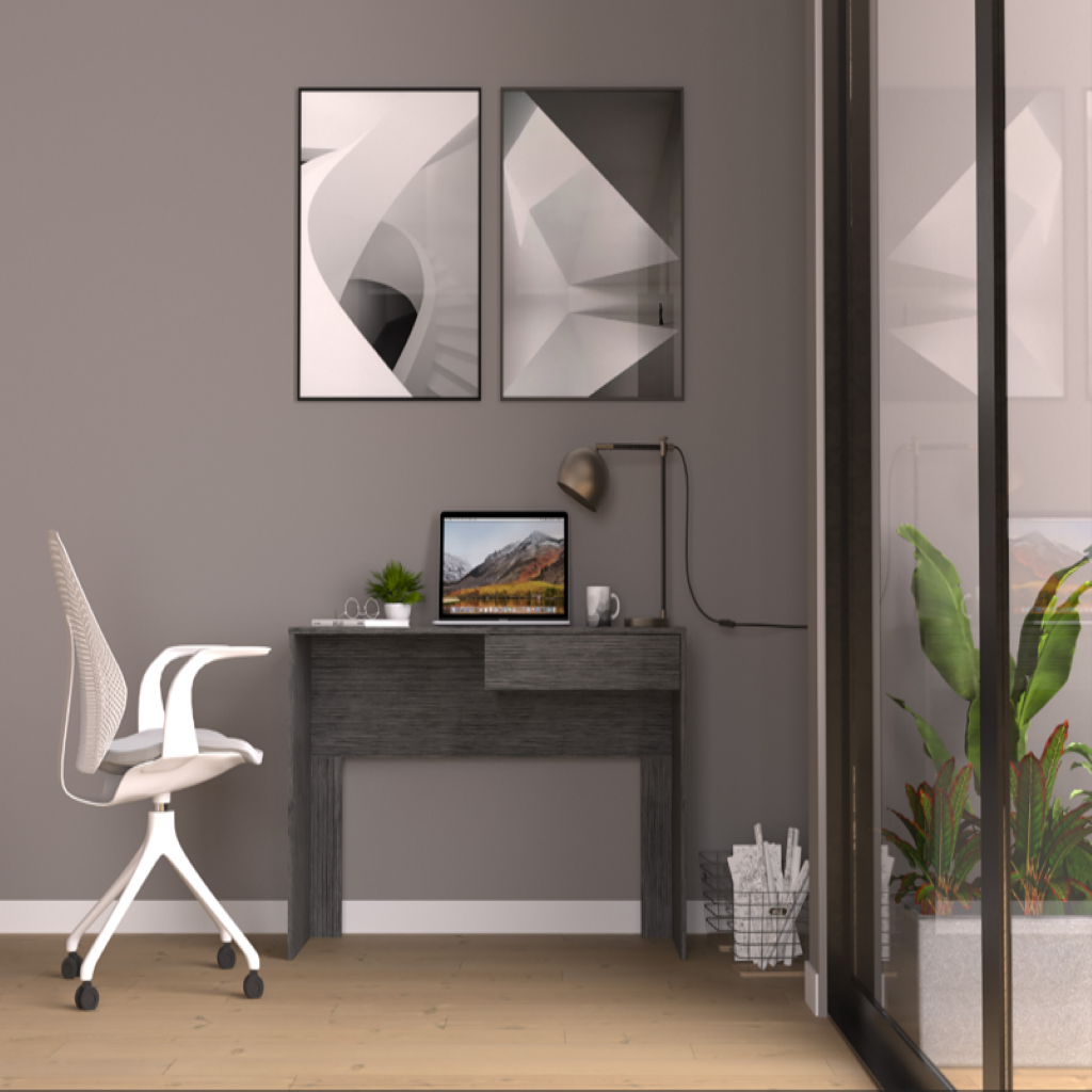 The Acanto One Drawer Writing Computer Desk is everything you need to study or work from home. With a height of 29.4" inches will give you a fair share of legroom; A spacious 43" W table-top will provide the space to work comfortably. This Desk is perfect and has a straightforward design for spaces with little room available. It features one spacious drawer to help you keep your items organized and handy whenever you may need them. Designed with elegant gray oak, black wengue and light gray manufactured wood finish.