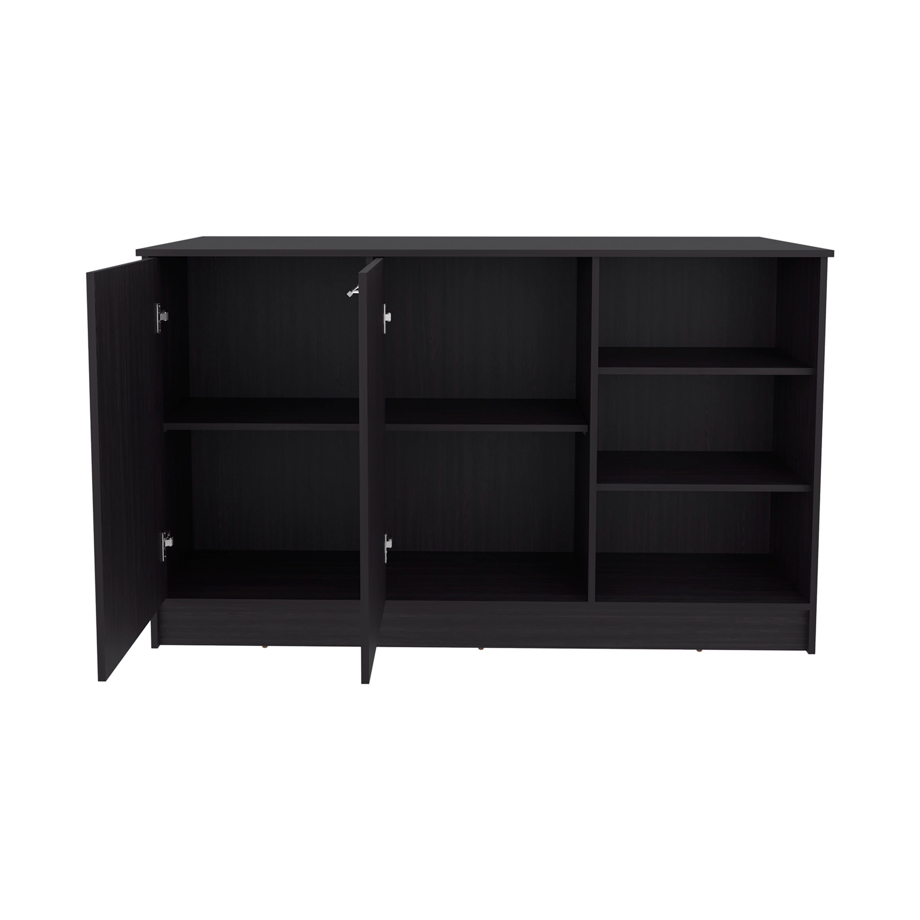 Mars Kitchen Island, the kitchen of your dreams is not an illusion anymore with the Mars Kitchen Island! It helps with all your needs, such as preparing your food to enjoy the way you like it organizing and storing all your elements in a safe and orderly manner; it has a countertop (59.05’’W X 26.37’’D) that can be used as an auxiliary table. It also includes two cabinets (18,7’’ W X 30,27’’H) with two interior shelves with ample storage space and three open shelves (18,7’’W X 9,6’’H). Designed with elegant white-dark brown manufactured wood finish.