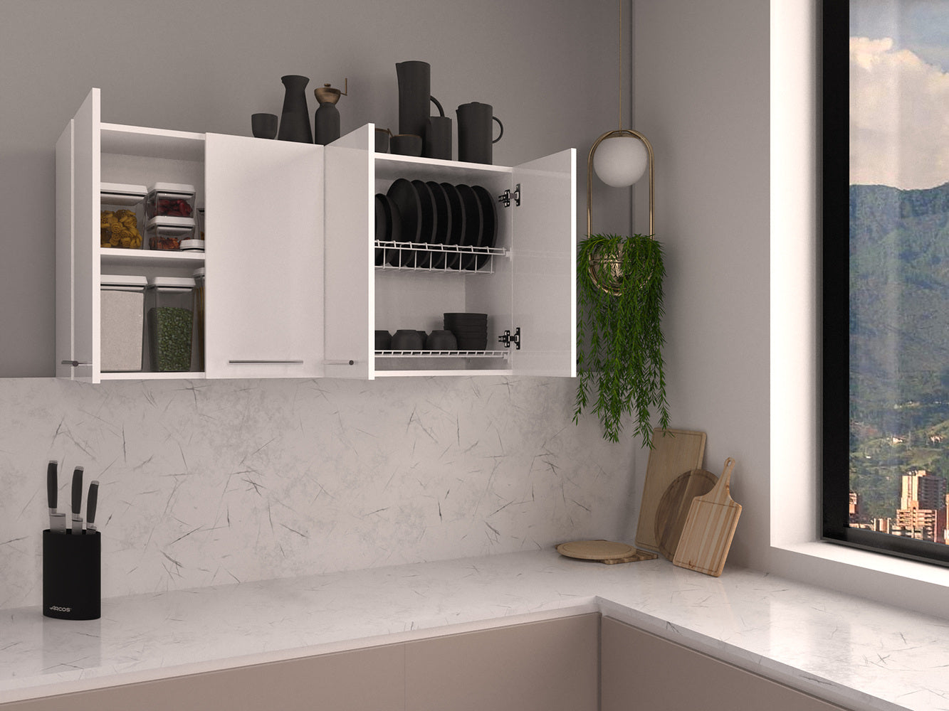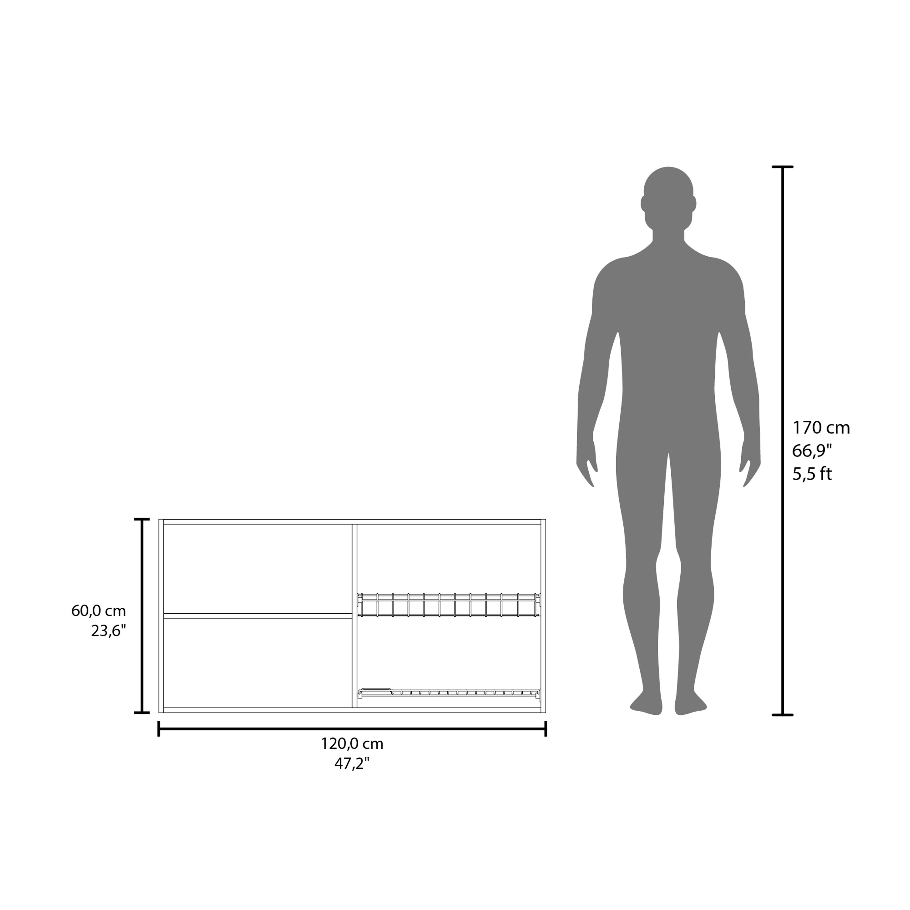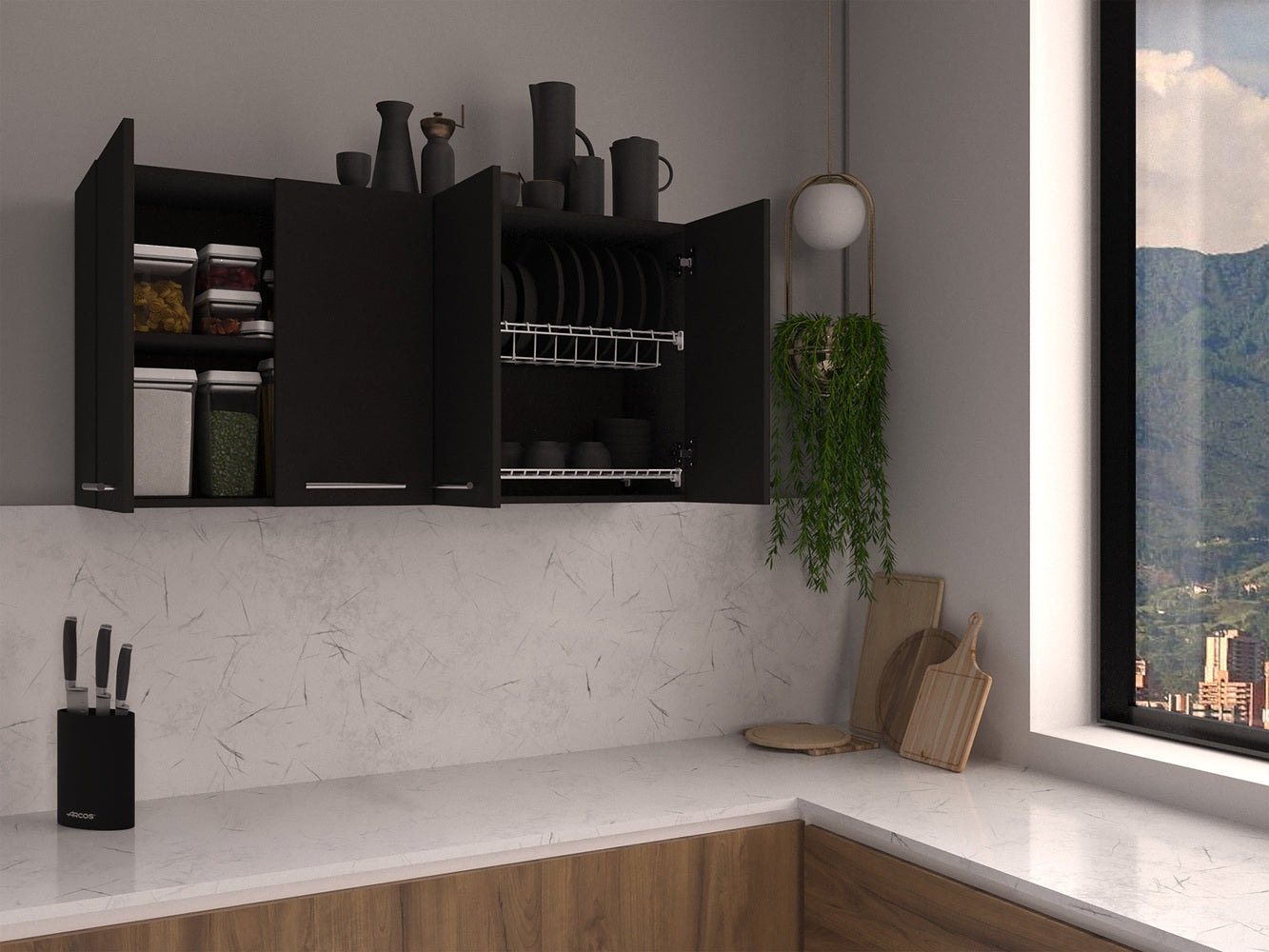 The Oceana 120 Kitchen Cabinet will give you that extra storage space that you need in your kitchen, garage, or mudroom. It features dimensions of 47.2” W x 23.6” H x 13.1” D, a wall-mounted, four-door wall-mounted cabinet, and two internal shelves. Designed with elegant Black Wengue, White manufactured Wood finish.