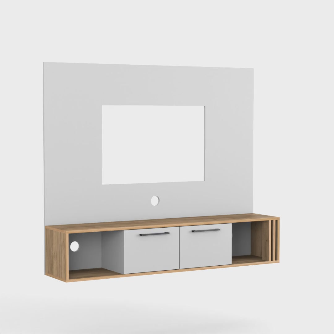 The Nuremberg Entertainment Center is a compact and stylish addition to your living room, designed to provide functionality and modern elegance. Featuring 2 doors and 4 shelves, it offers ample storage for media devices, books, and decor while maintaining a clean and organized look. The combination of White and Natural Oak finishes complements contemporary interiors.