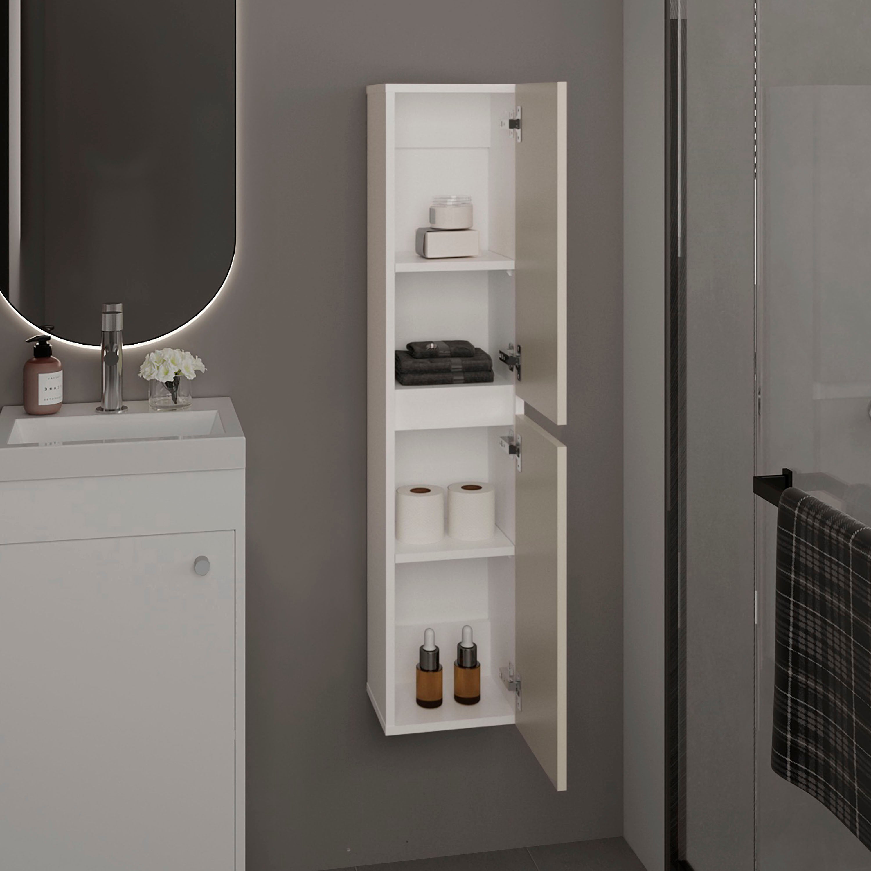 Burgaw Bathroom Cabinet, 2 Doors, 4 Shelves