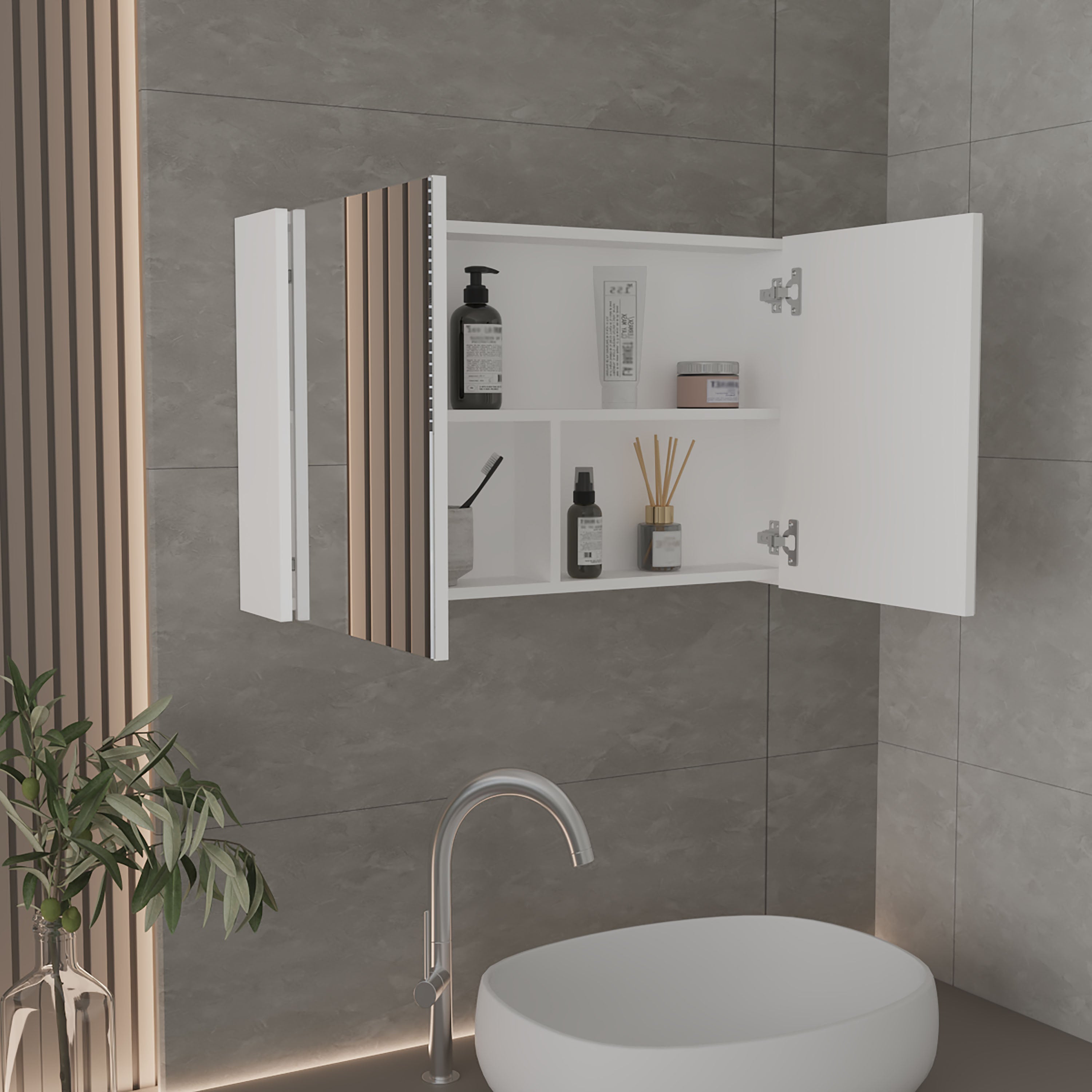 The Cantwell Medicine Cabinet offers a stylish and functional solution for bathroom storage. With 2 doors and 3 spacious shelves, it provides ample space to store your toiletries and essentials while keeping them organized. The 2 built-in mirrors enhance both practicality and design, making it an ideal addition to any bathroom. The clean white finish and sleek design allow it to complement various bathroom styles, while its compact size ensures it fits perfectly even in smaller spaces.