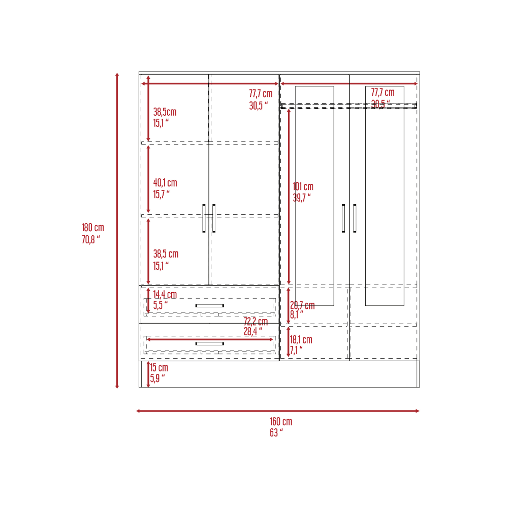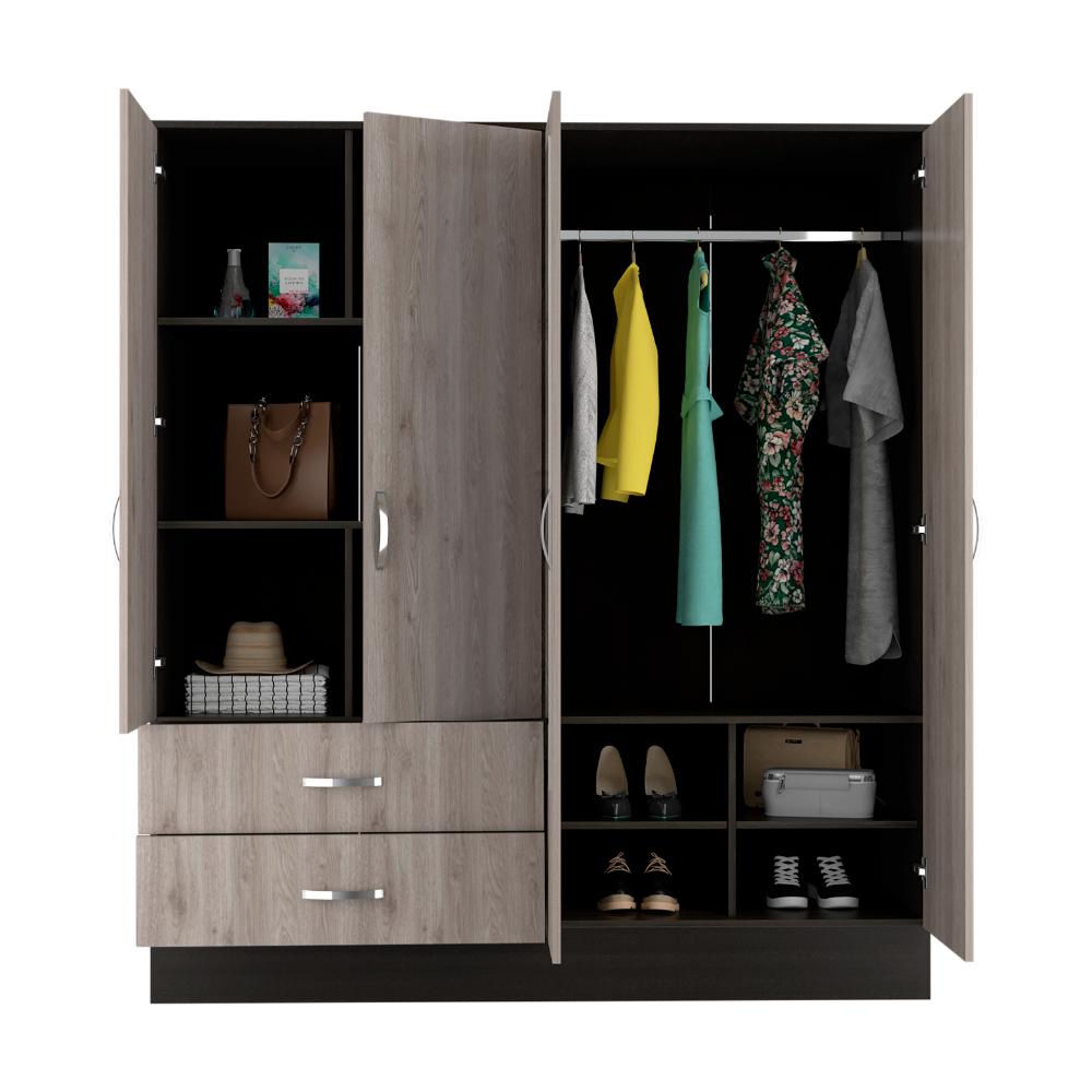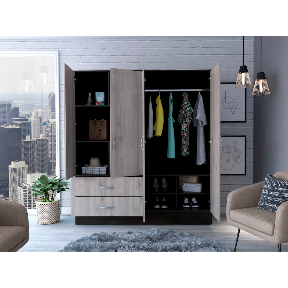 Gangi Armoire, Double Door Cabinet , Two Mirrors, Metal Hardware, Two Drawers, Rod, Six Shelves