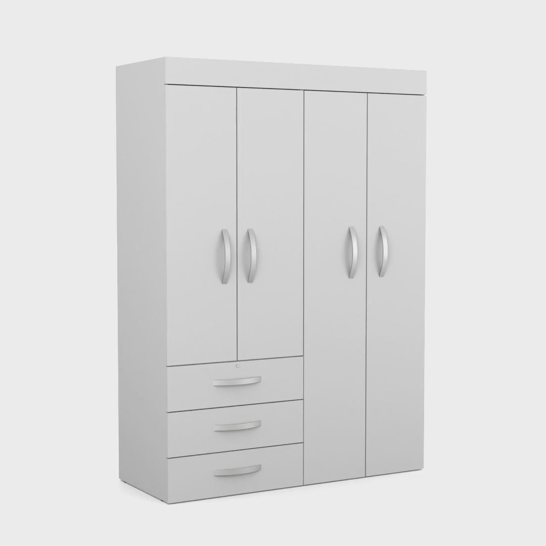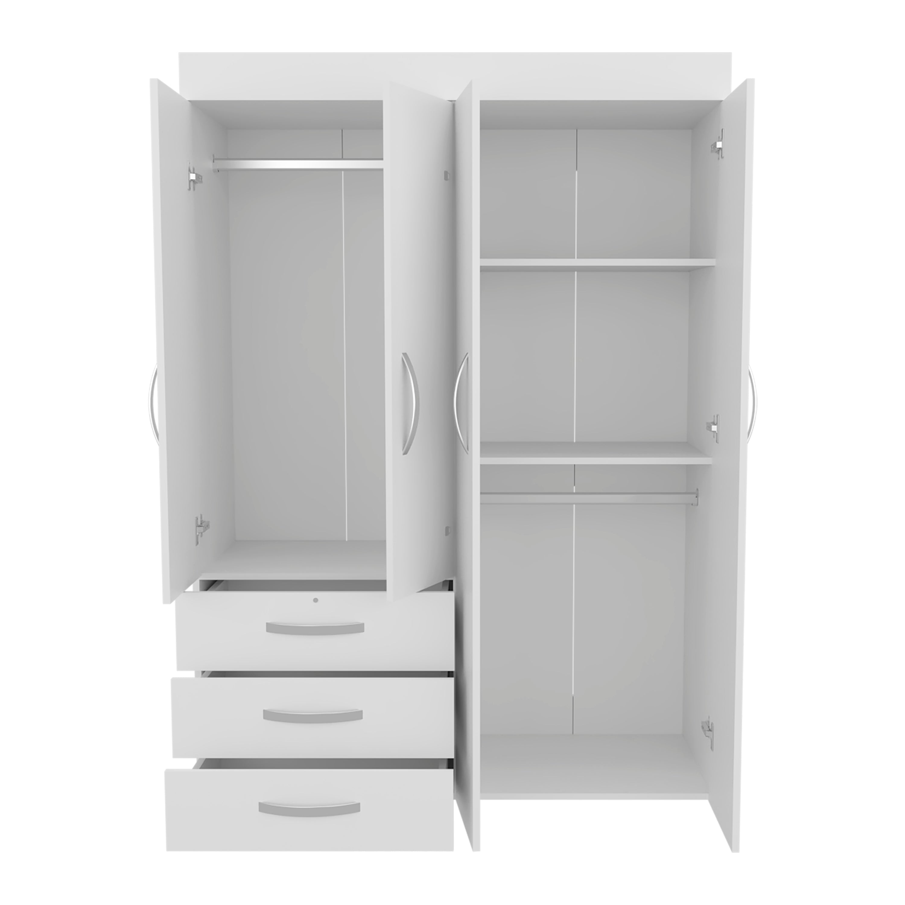 Hamilton Mobile Armoire, Double Door Cabinet, Three Drawers, Rods, Two Shelves