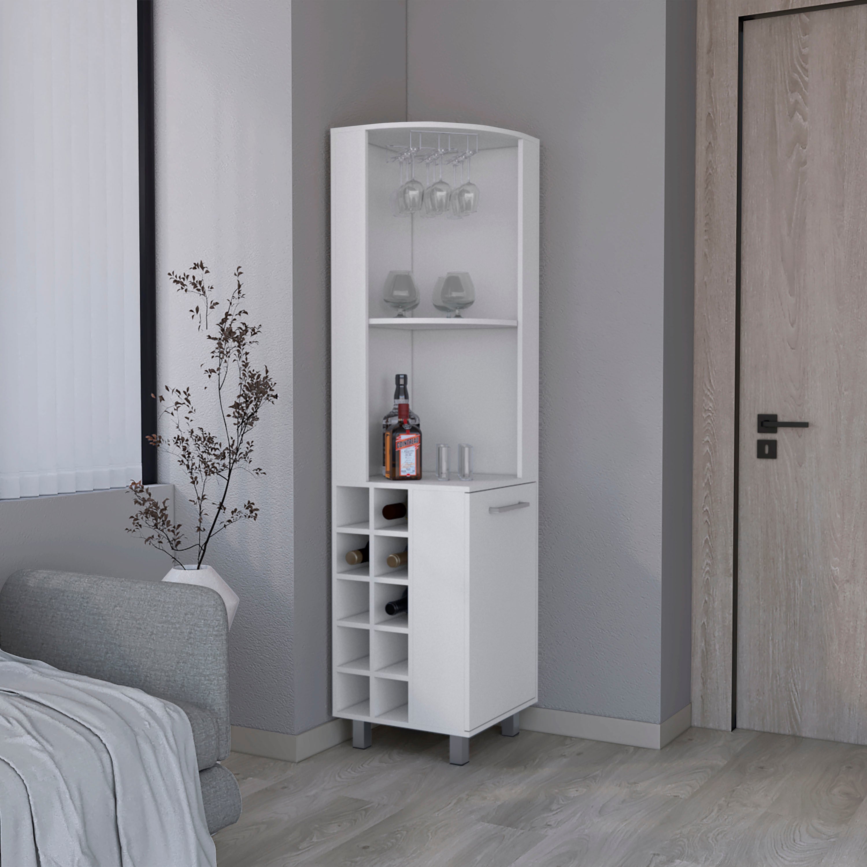 Morocco Corner Bar Single Door Cabinet Two Shelves, Ten Built-in Wine Rack, Two Interior Shelves, Living Room