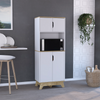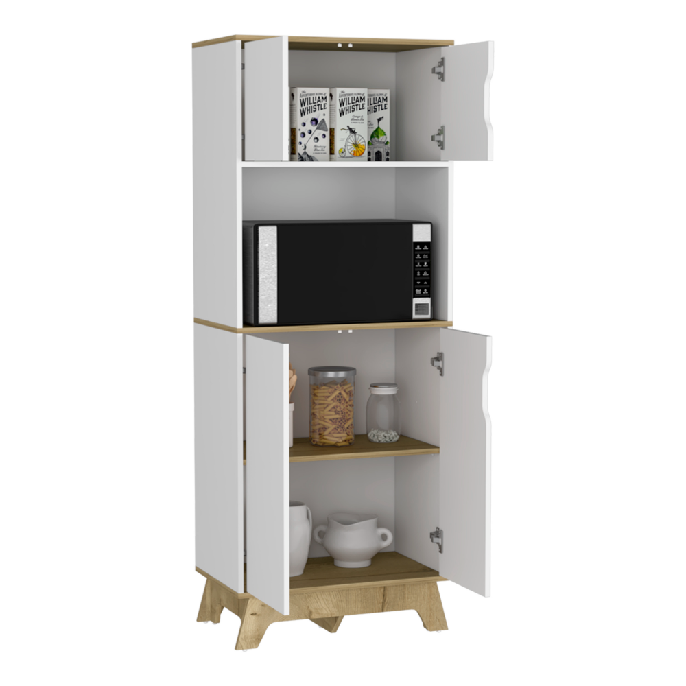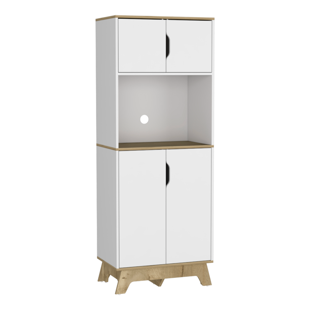 Catalhea Microwave Pantry Cabinet is perfect for anyone who wants to add more organization and style to their kitchen. This microwave cabinet has a contemporary design, with wide shelves perfect for storing all of your cooking supplies, especially for the back hole opening for the microwave. The double-door cabinets on the top and bottom provide even more space, and the shelf can be adjusted to fit your needs. Designed with an elegant light oak-white manufactured wood finish.