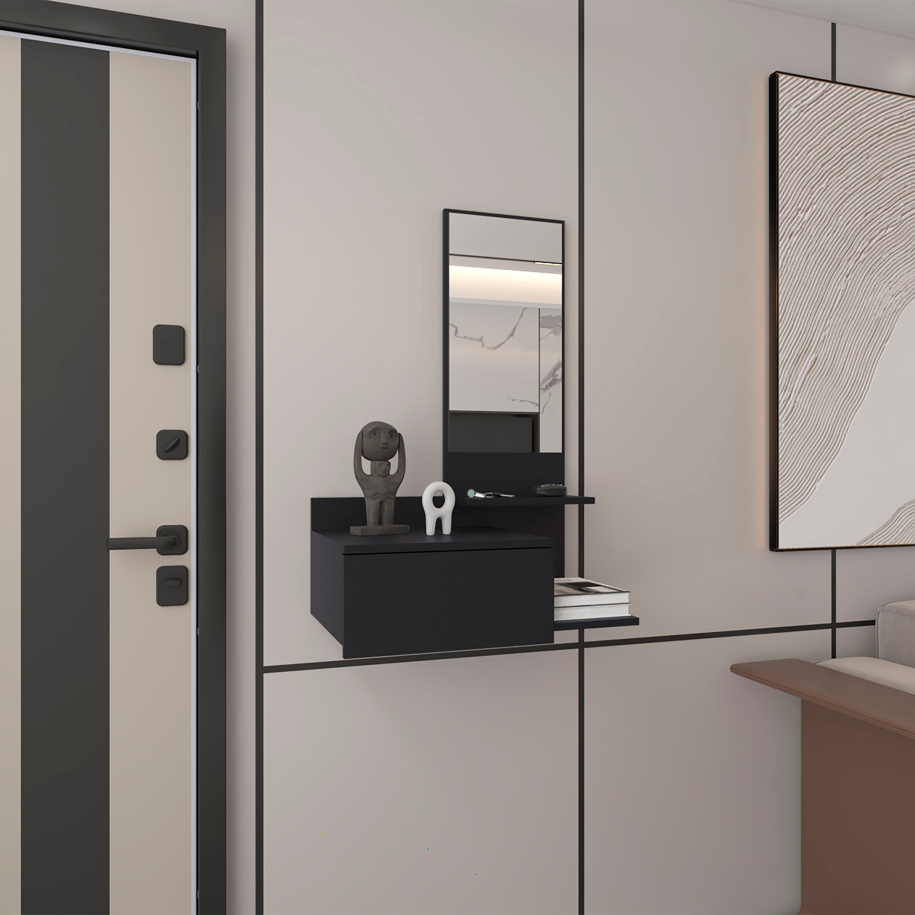 Sitka Floating Hallway Cabinet, 1 Drawer, 3 Shelves, 1 Mirror