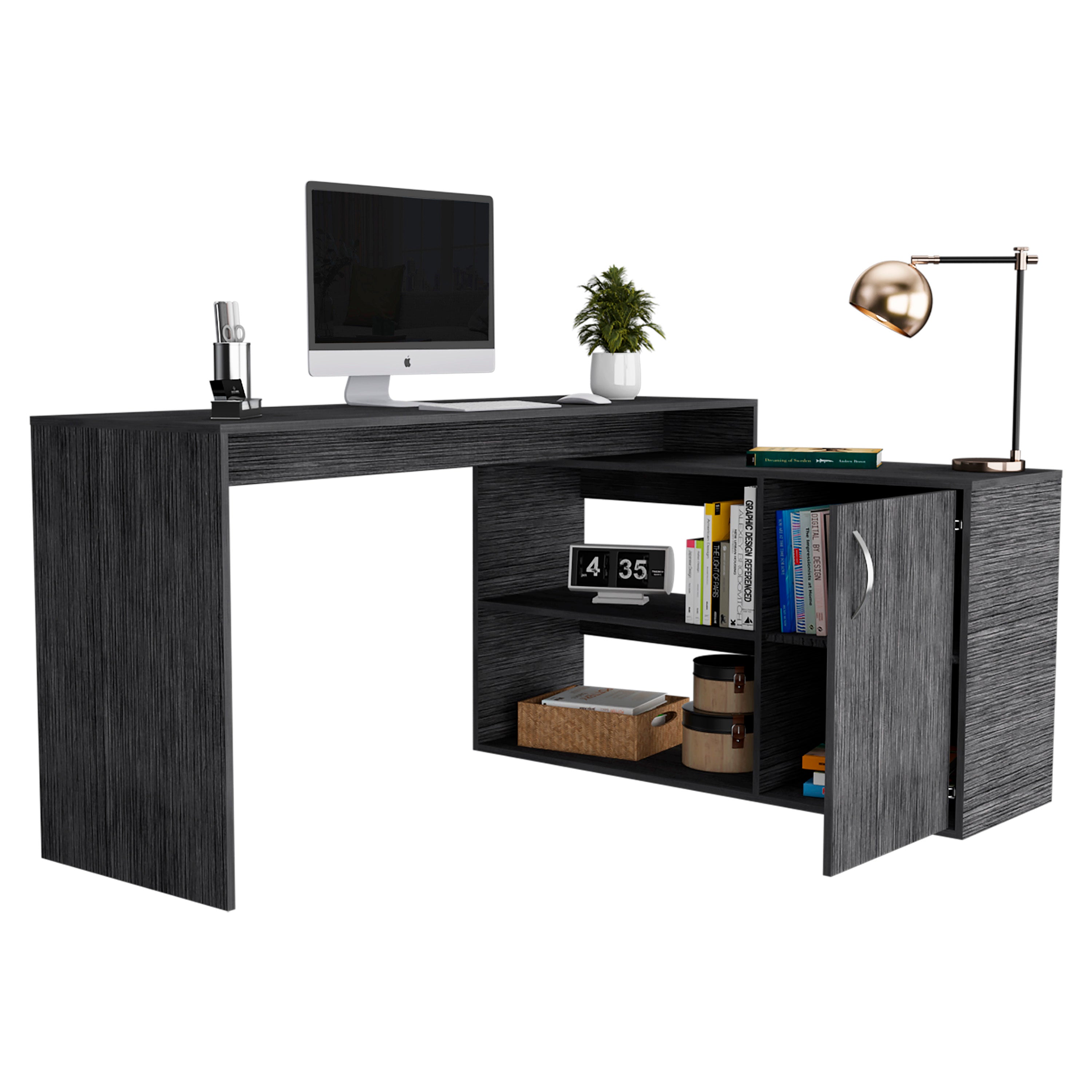 The Boston Home Office Desk provides a stunning good look to your home office room, this ""L"" shaped computer corner Desk offers a spacious work surface (45,86''D X 59,64''W) that is great for doing paperwork, or for using with a computer. The secondary surface offers additional workspace, two open shelves (27,71''W X 11,81''H) and a large storage cabinet that can be used for other important items. Designed with elegant black wengue, light oak, smoky oak and white manufactured wood finish.