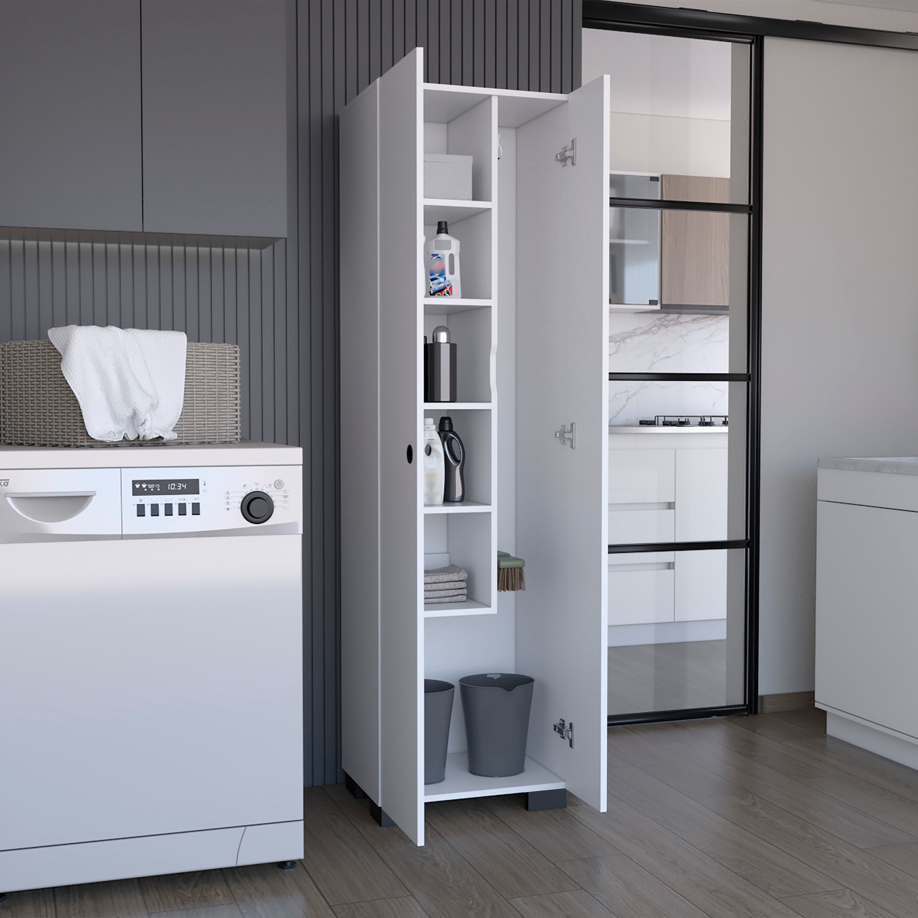 Attica Broom Cabinet Double-Door Design with Inner Shelves and Side Hangers