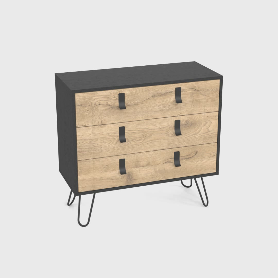 Huna Three-Drawer Dresser, Modern Chest of Drawers with Hairpin Legs and Metal Accents