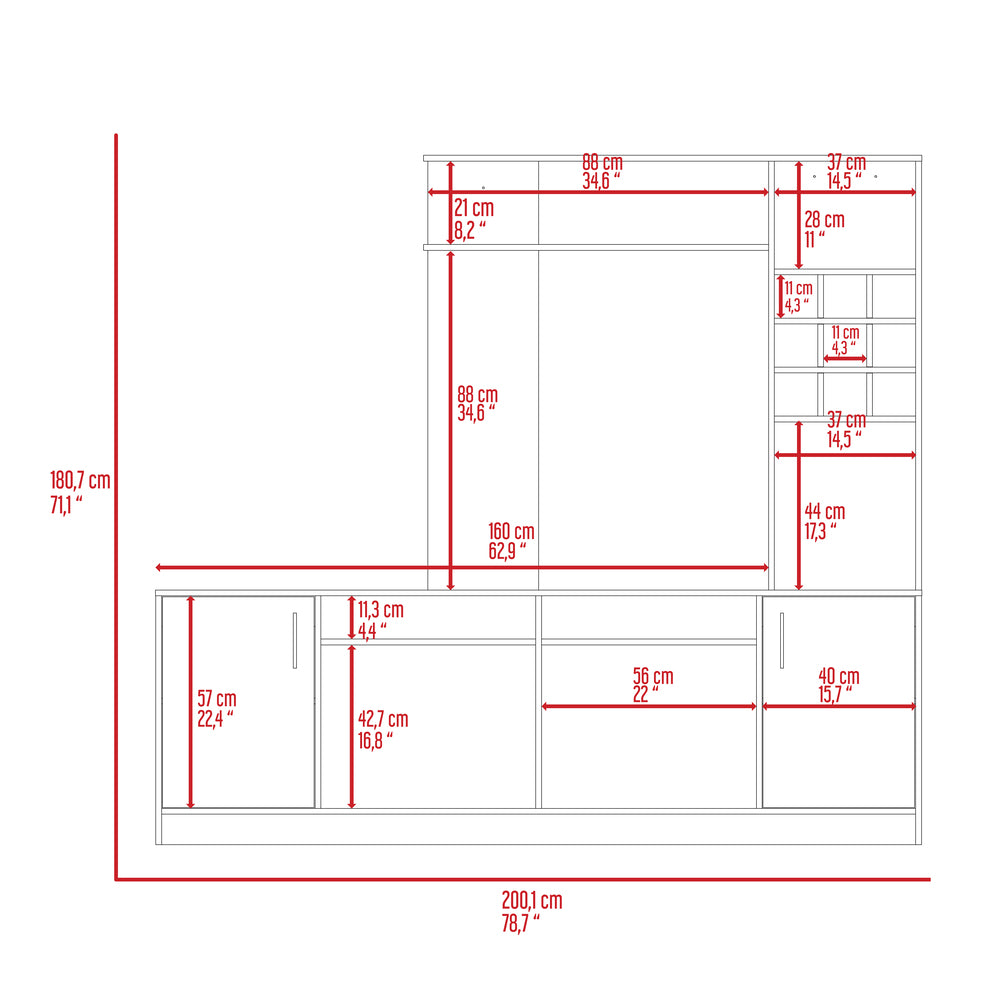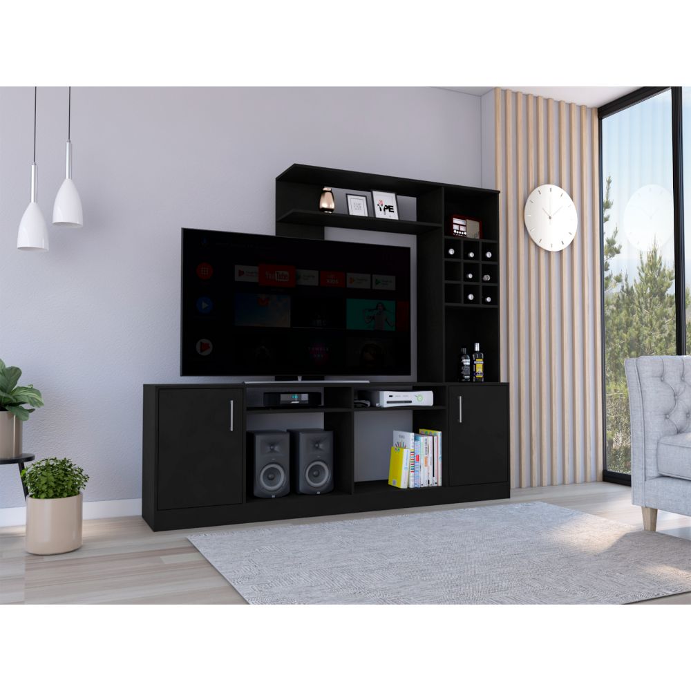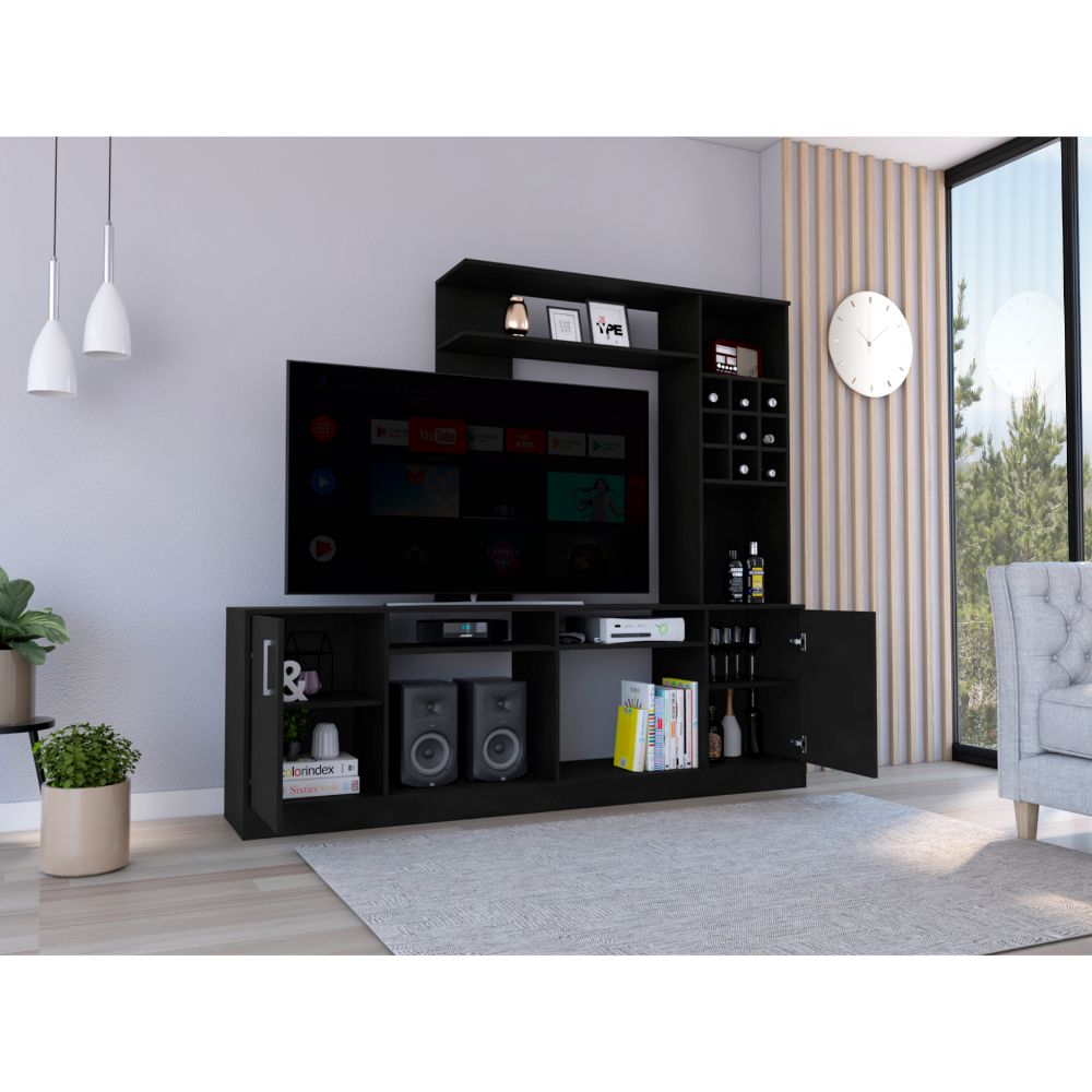 King Entertainment Center for TV´s up 78", Double Door Cabinet, Storage Spaces, Six External Shelves