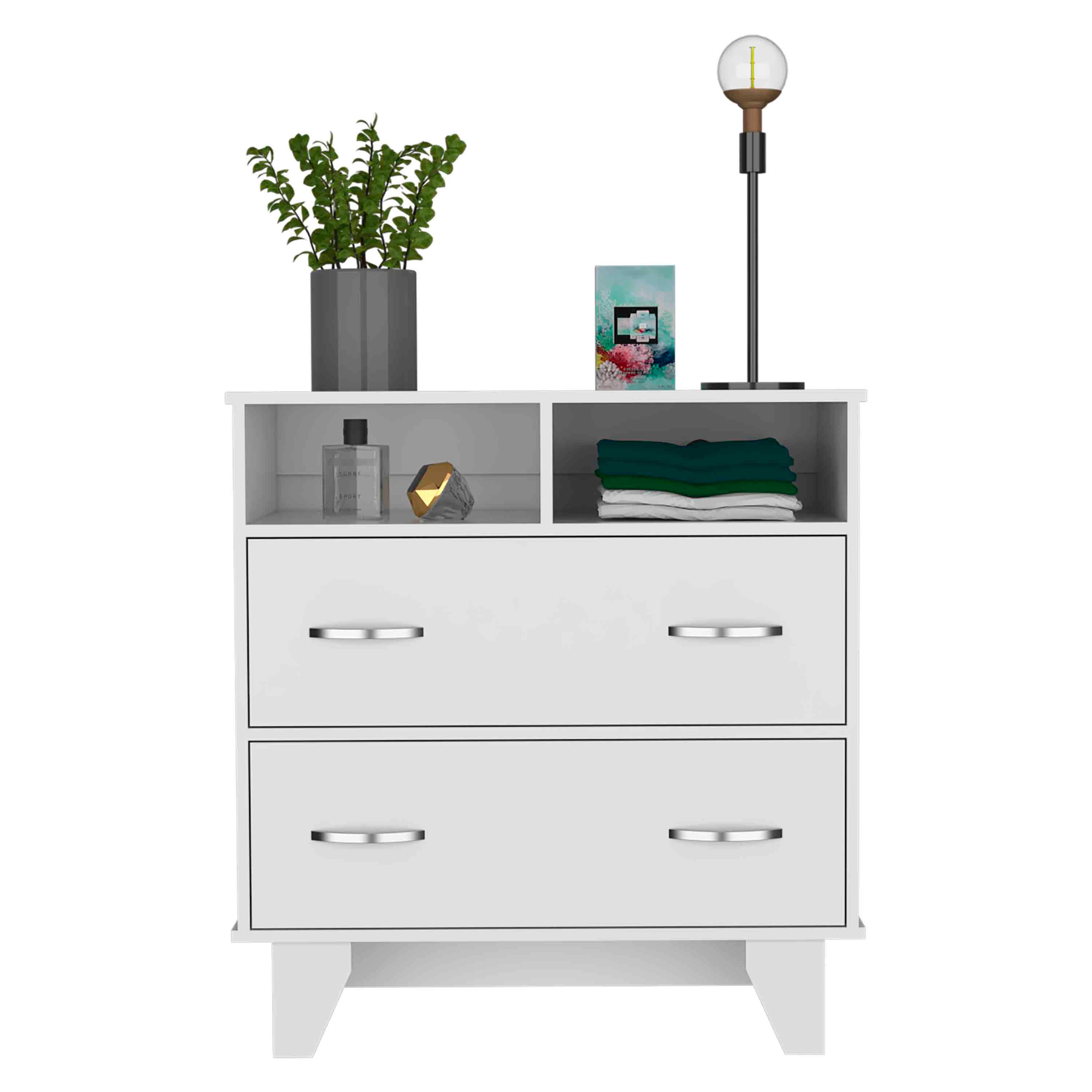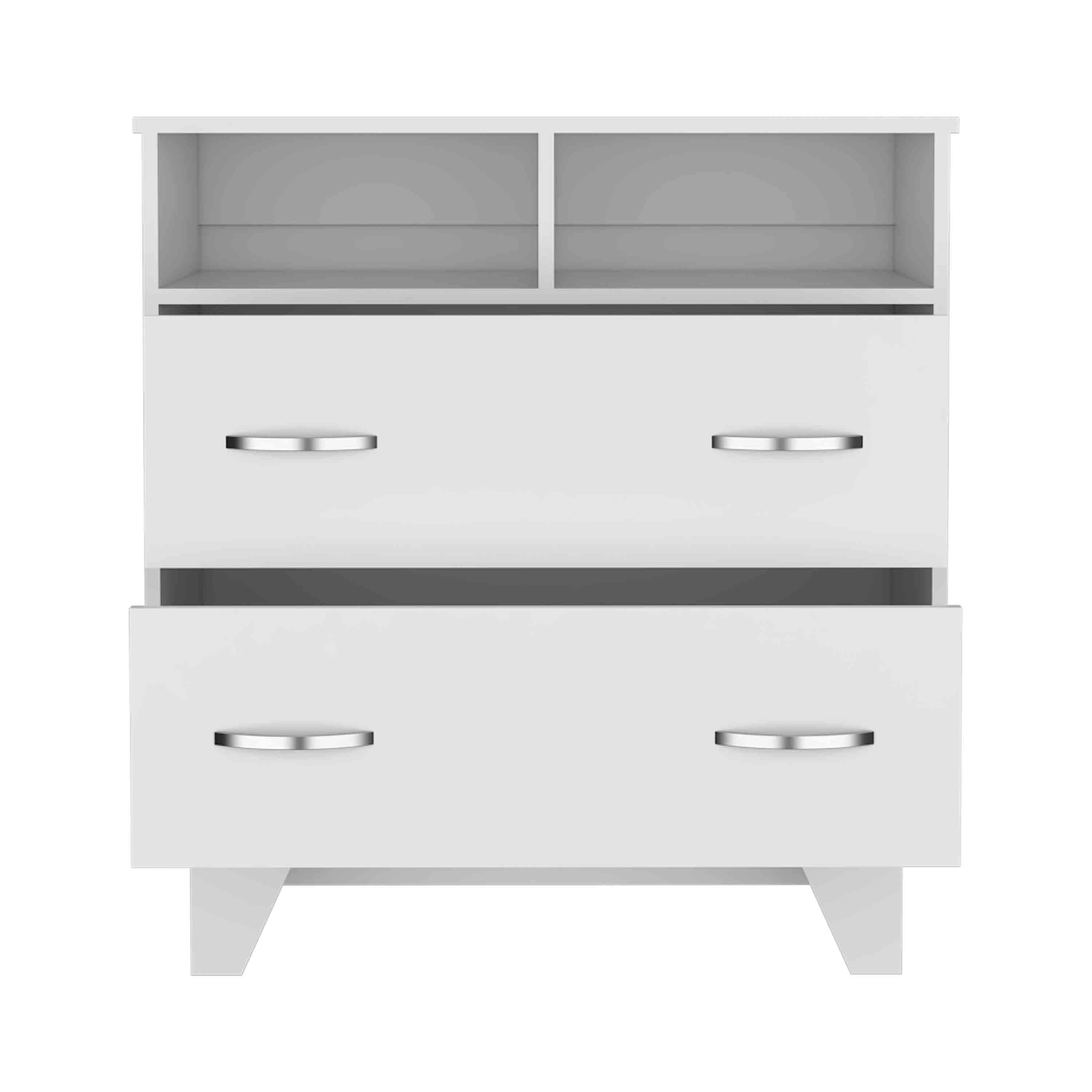 Stamford Two Drawer Dresser, Four Legs, Two Open Shelves, Superior Top