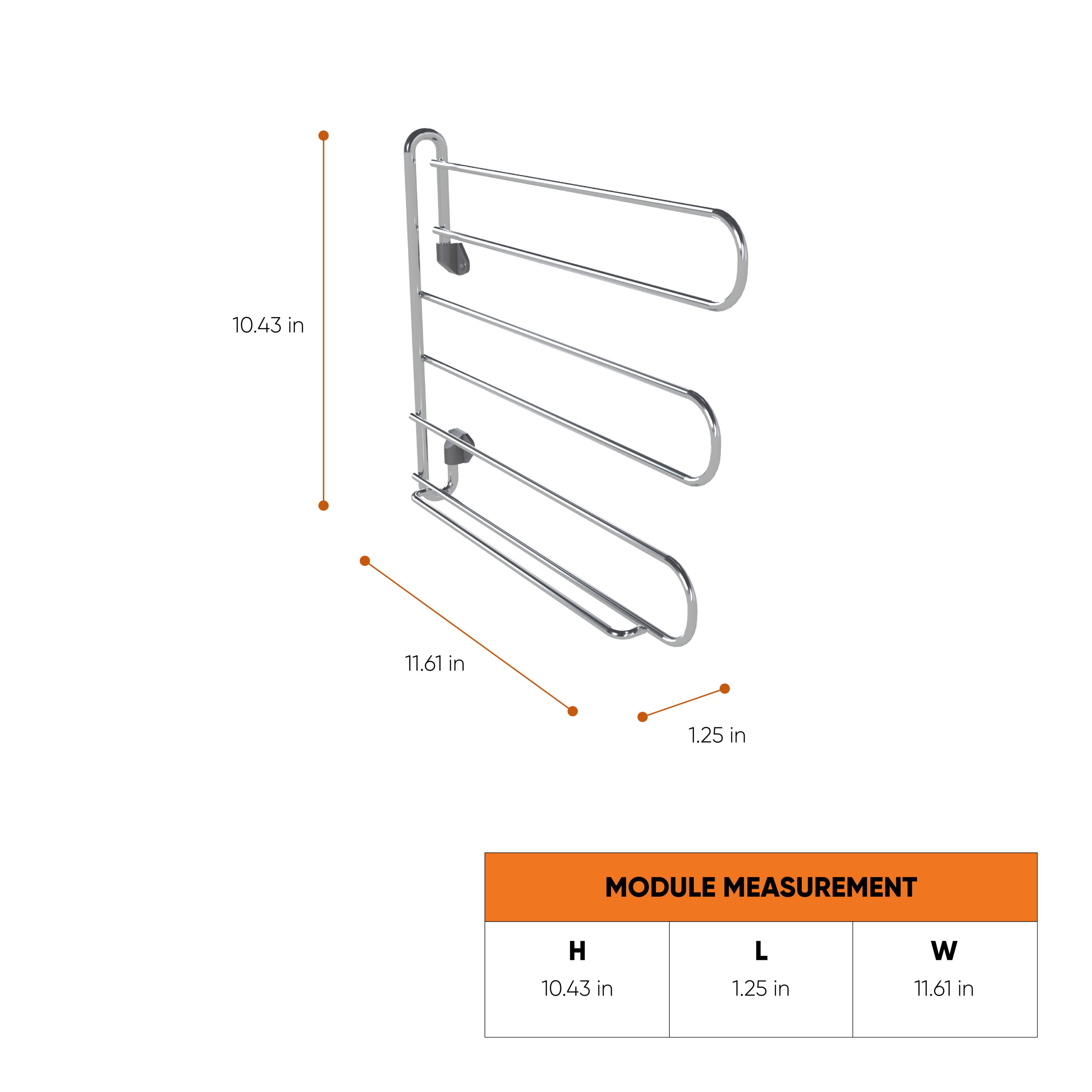 This sleek, stainless steel belt and tie holder will keep you looking sharp and organized. The modern design is perfect for any contemporary home or office. With 2 chrome baths and metal rods, this holder is sturdy and built to last.