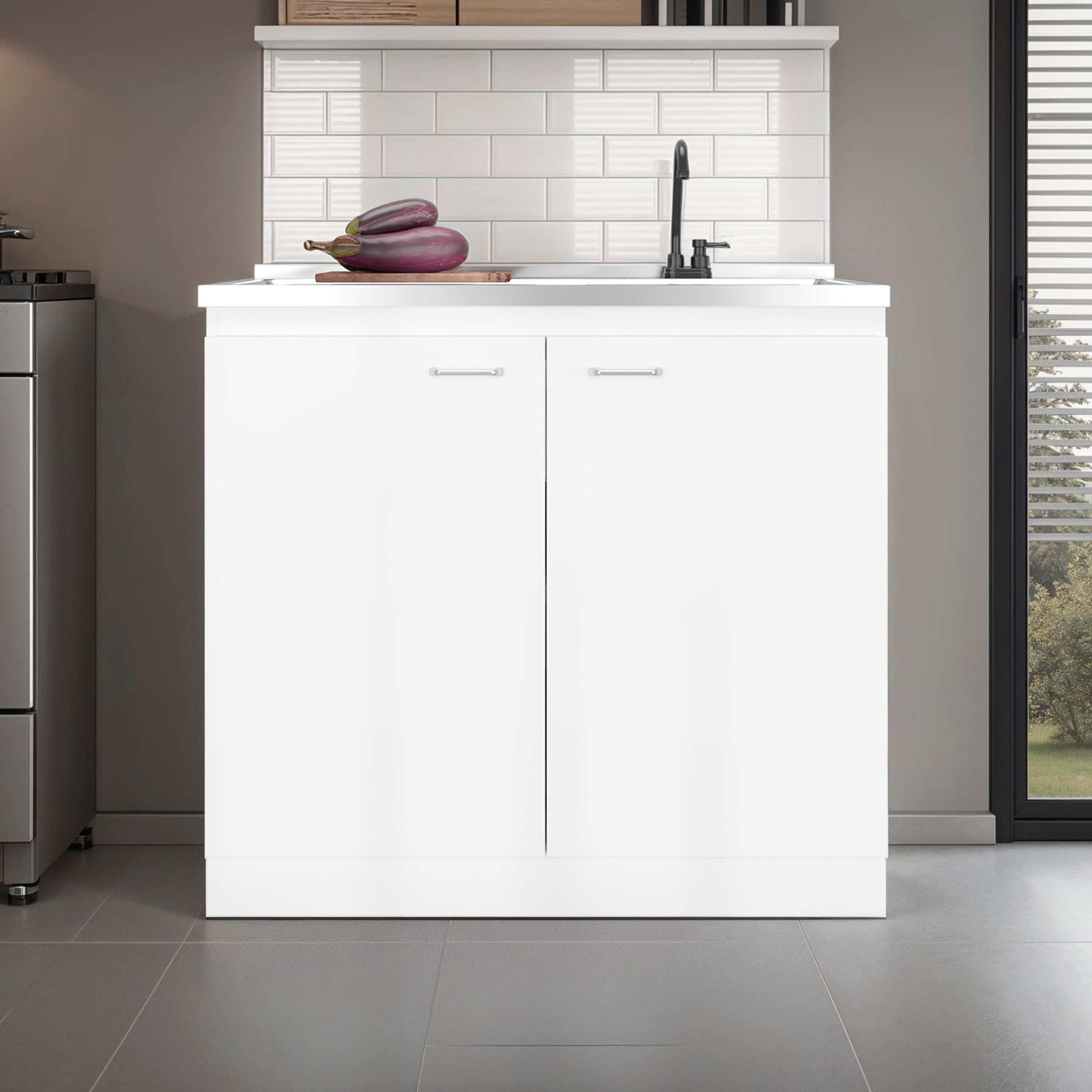 Salento Utility Sink With Cabinet, Double Door Cabinet