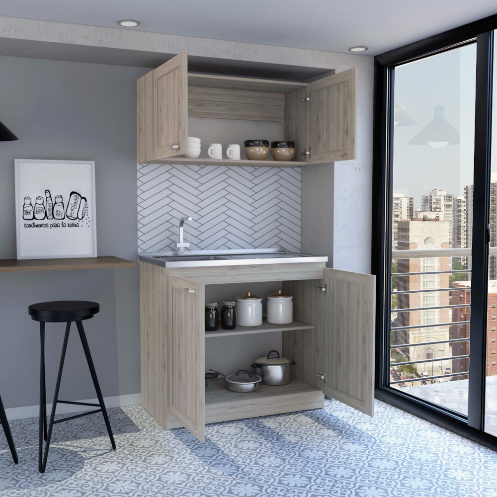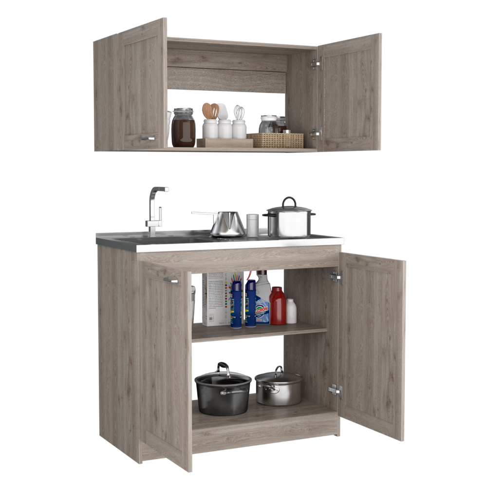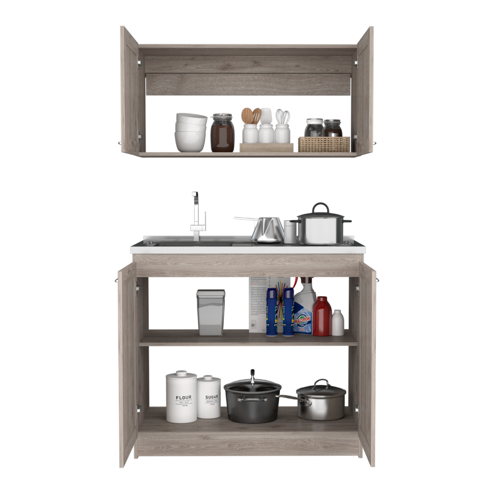 Agate Cabinet Set, is your kitchen feeling a little incomplete? Do you need a Cabinet Set to give it that finished looking? Well, we have the perfect solution for you. The Agate Cabinet Set is ideal for any kitchen. It has plenty of storage and enough space to fit all kitchen supplies. Plus, it has a unique two-door cabinet design. Don't miss out on this must-have addition to your kitchen set-up. The superior top (41.2'') and the low top (44.3''). Designed with elegant black wengue, light grey and white manufactured wood finish.