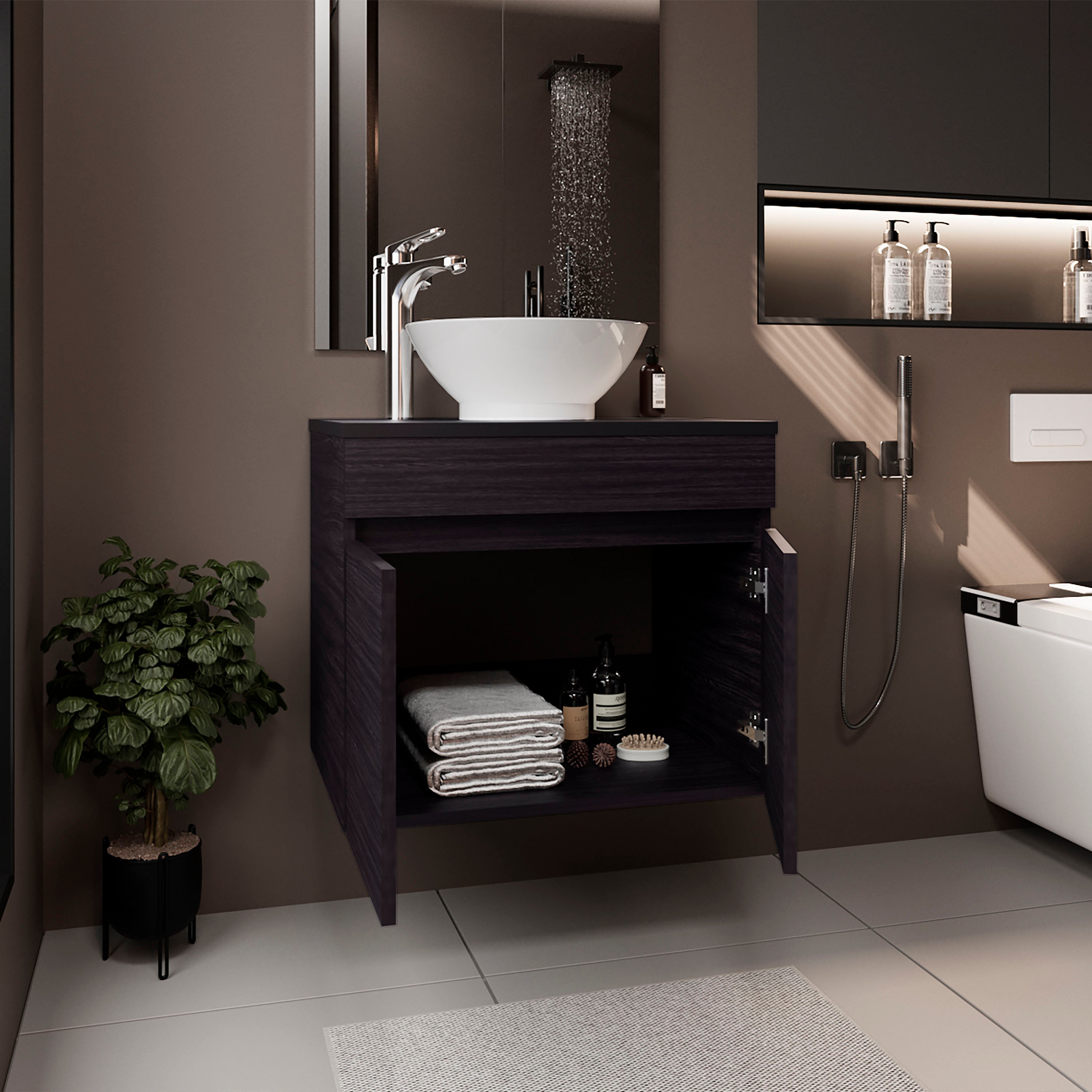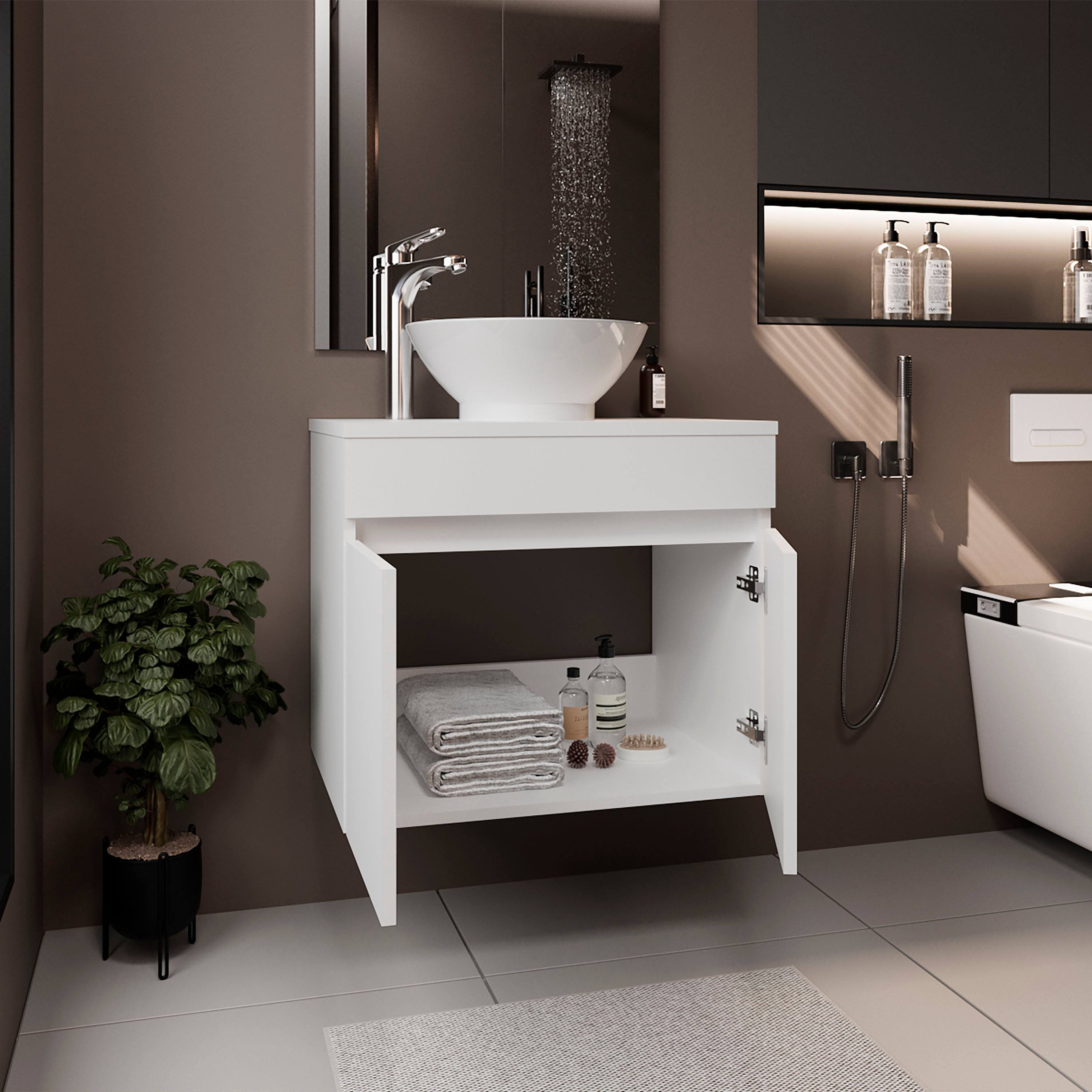 The Capac Bathroom Vanity is a practical and compact storage solution designed to elevate your bathroom space. With two doors that open to a spacious interior, it’s perfect for neatly storing towels, toiletries, and cleaning supplies. Its clean design fits effortlessly into small or medium-sized bathrooms, providing everyday functionality without taking up too much space.
