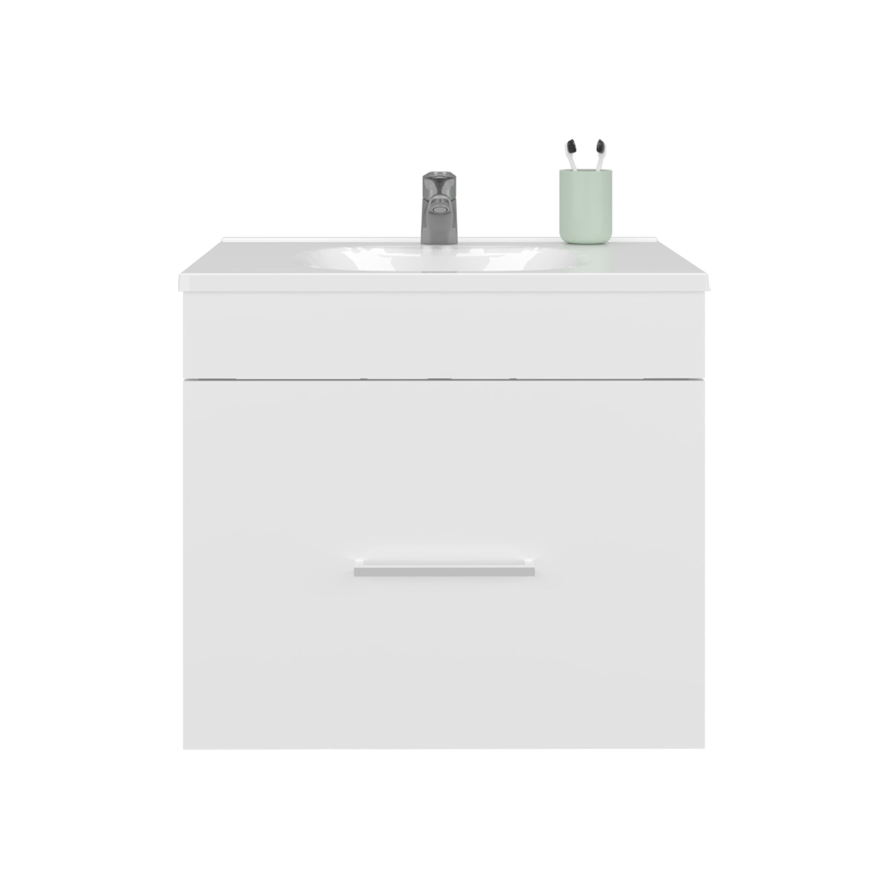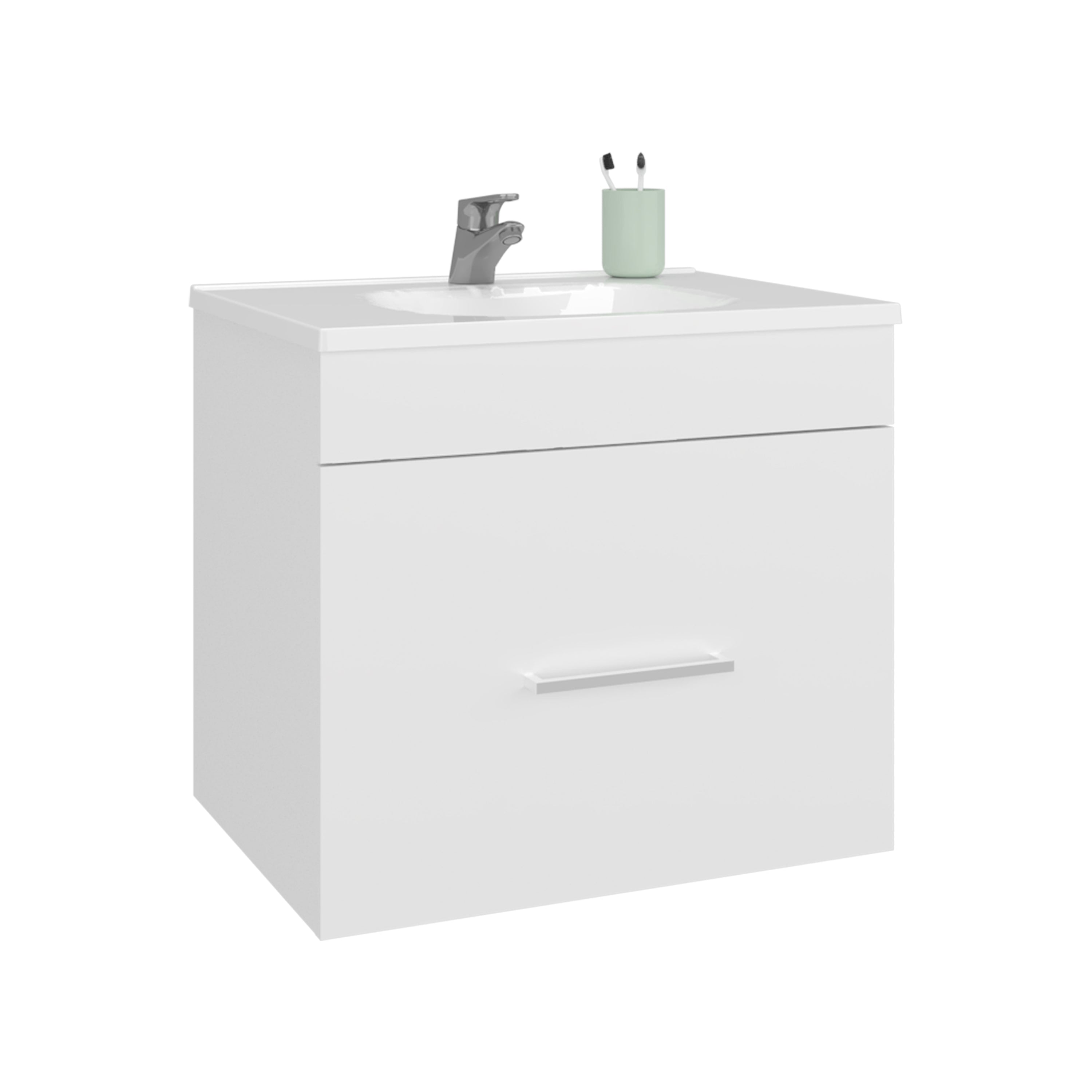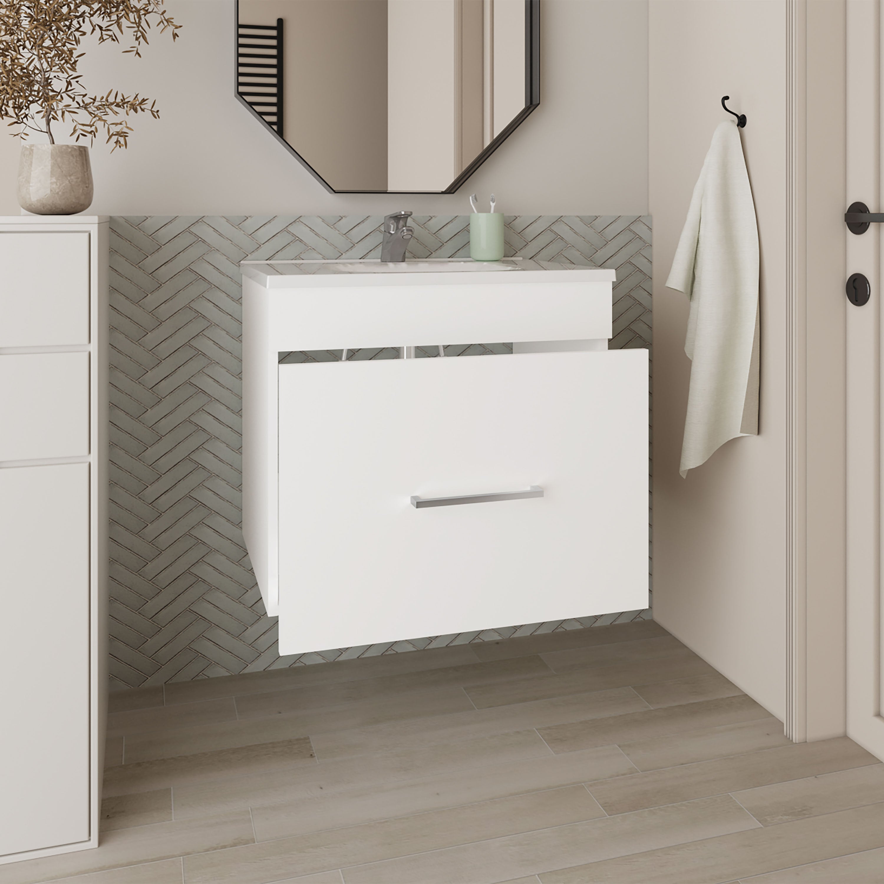 The Wixom Bathroom Vanity offers a compact yet practical storage solution for your bathroom essentials. Featuring a single spacious drawer, it's ideal for keeping toiletries, towels, or cleaning products neatly stored and easily accessible. Its clean, minimal design makes it a great addition to small or modern bathroom spaces.