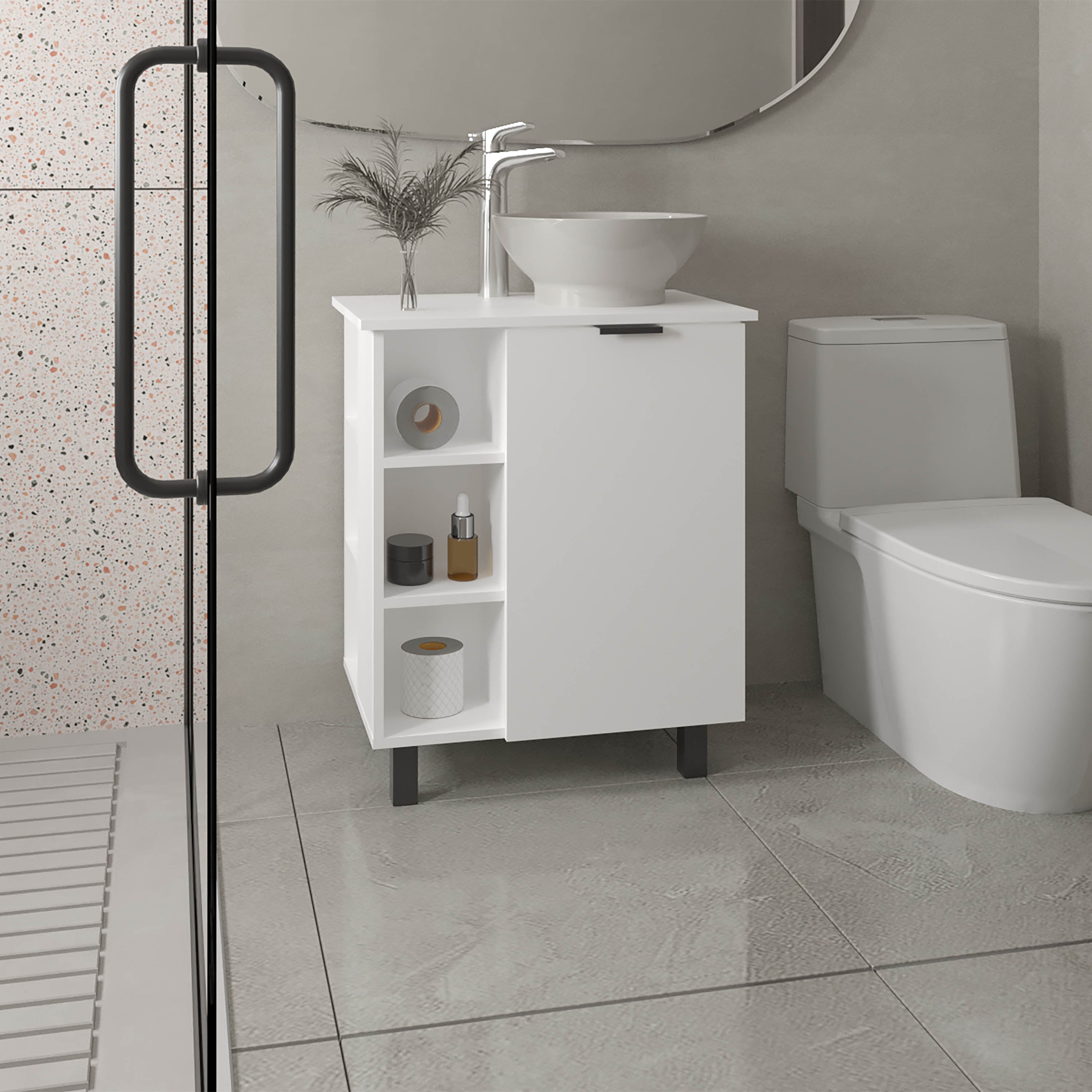 Valdez Bathroom Vanity, 1 Door, 4 Legs, 2 Shelves