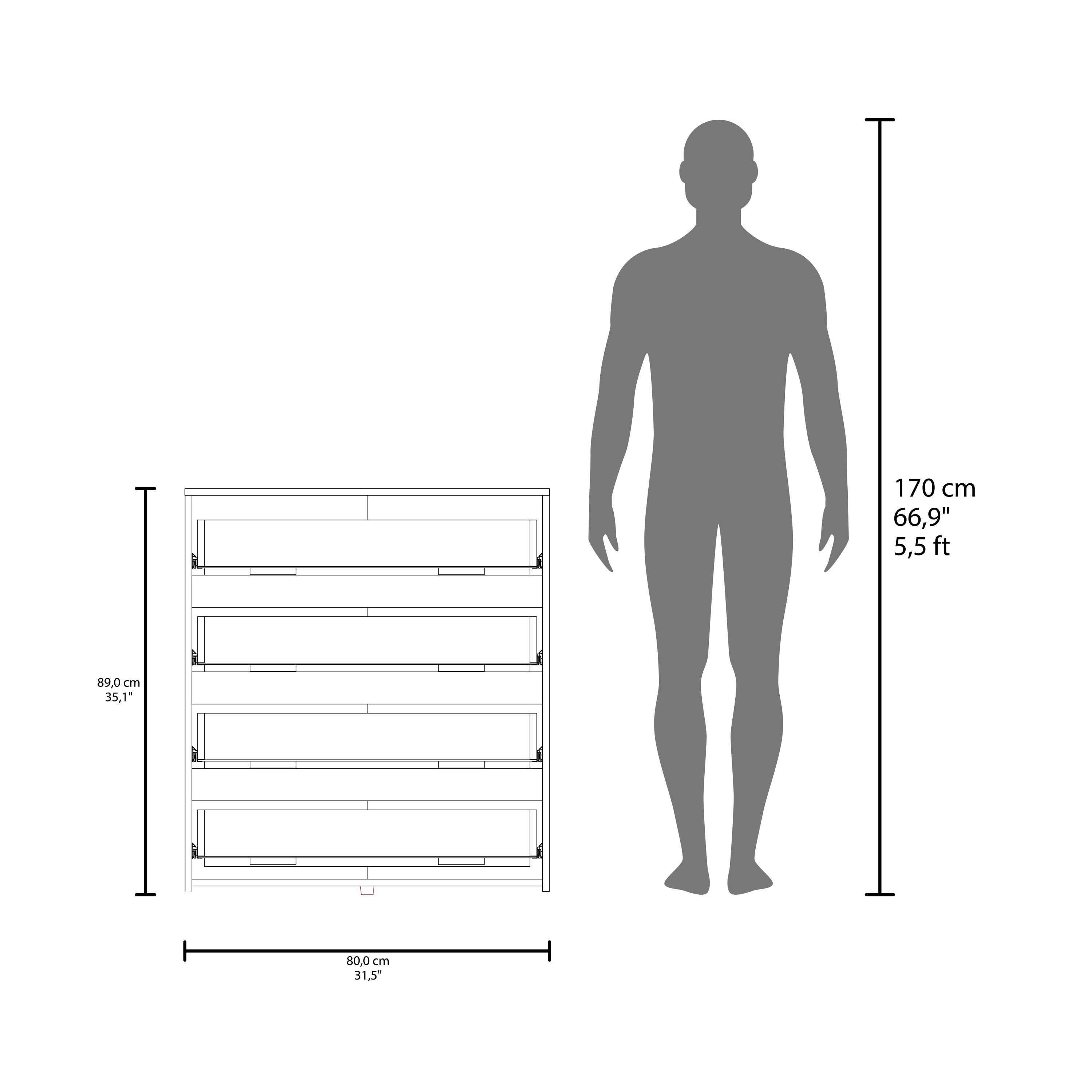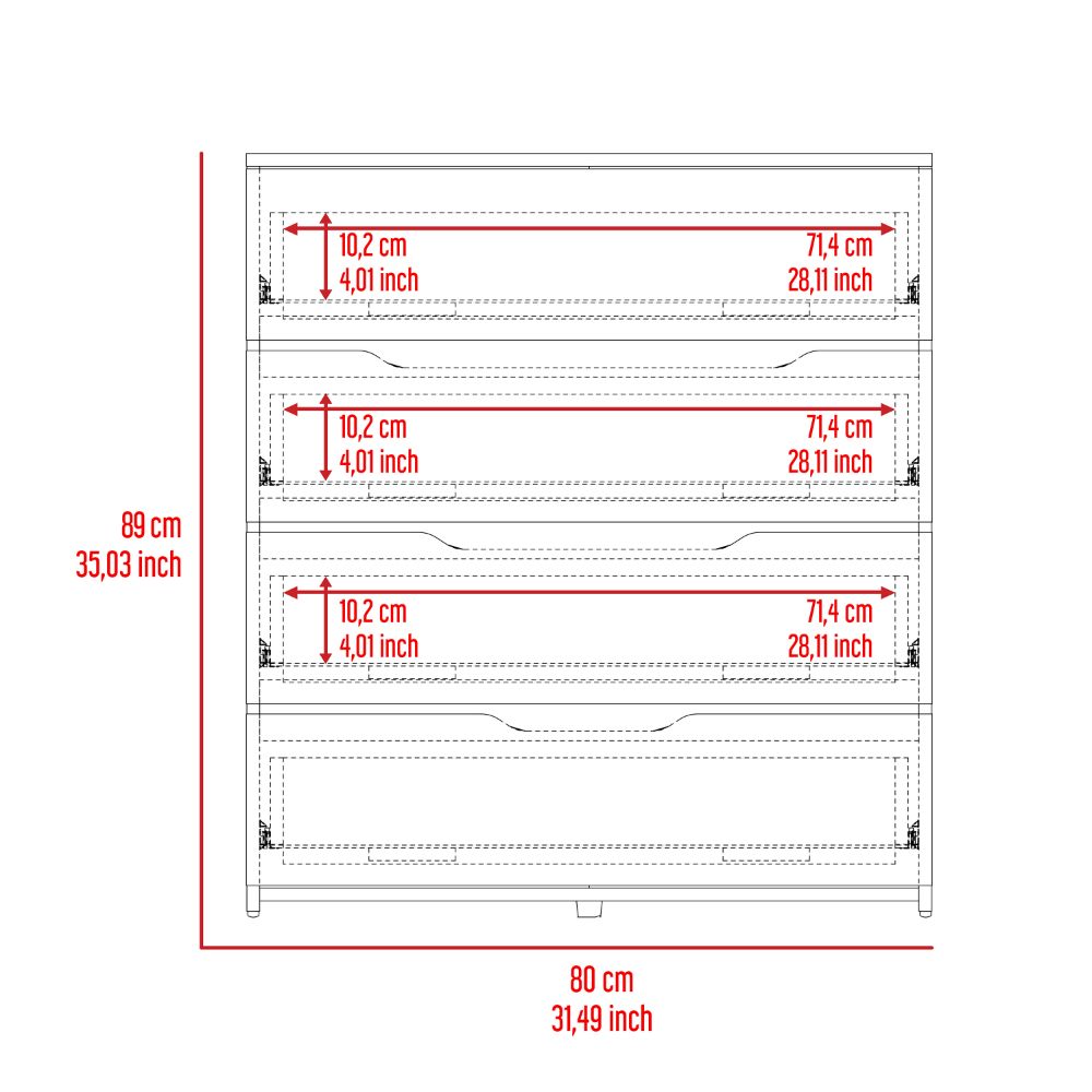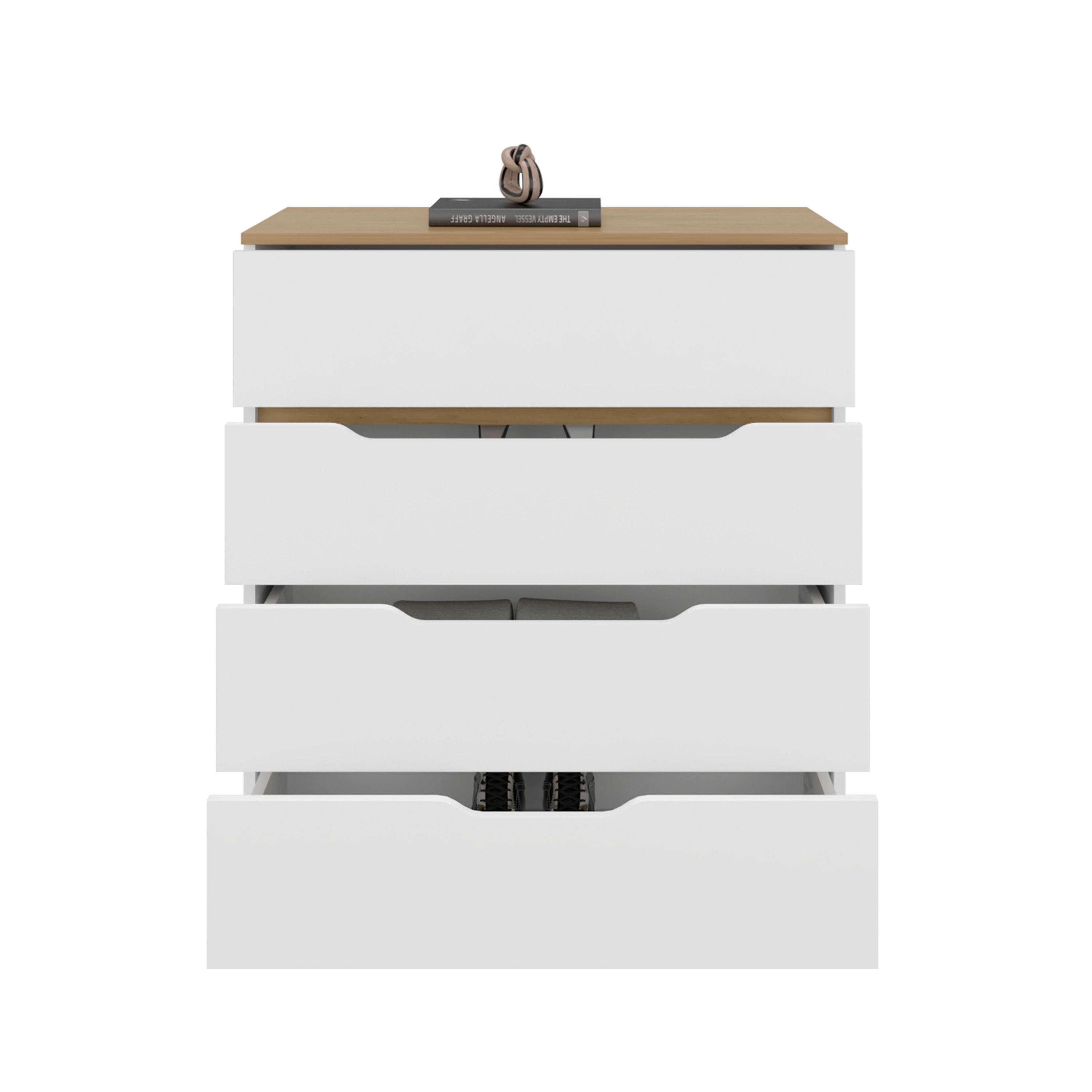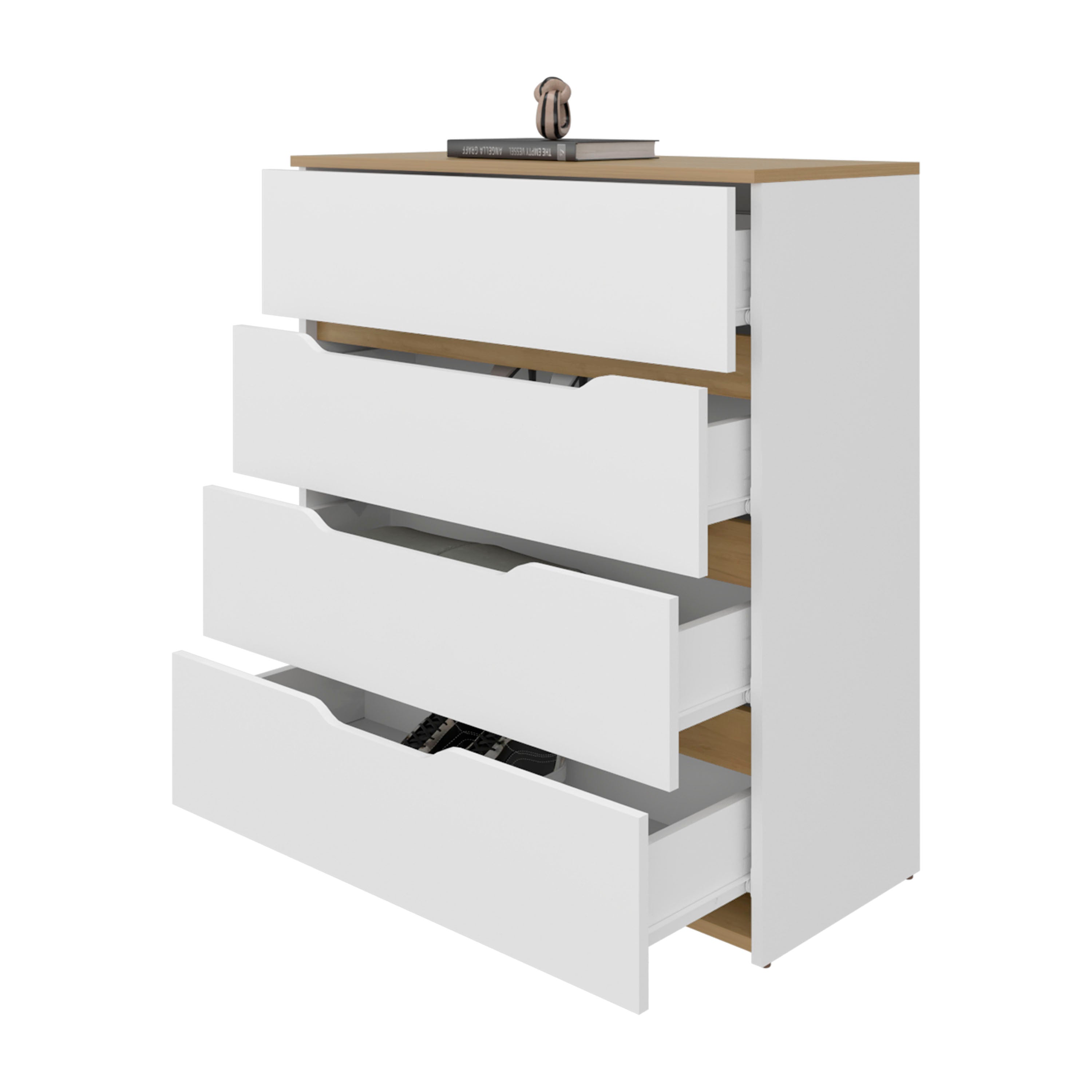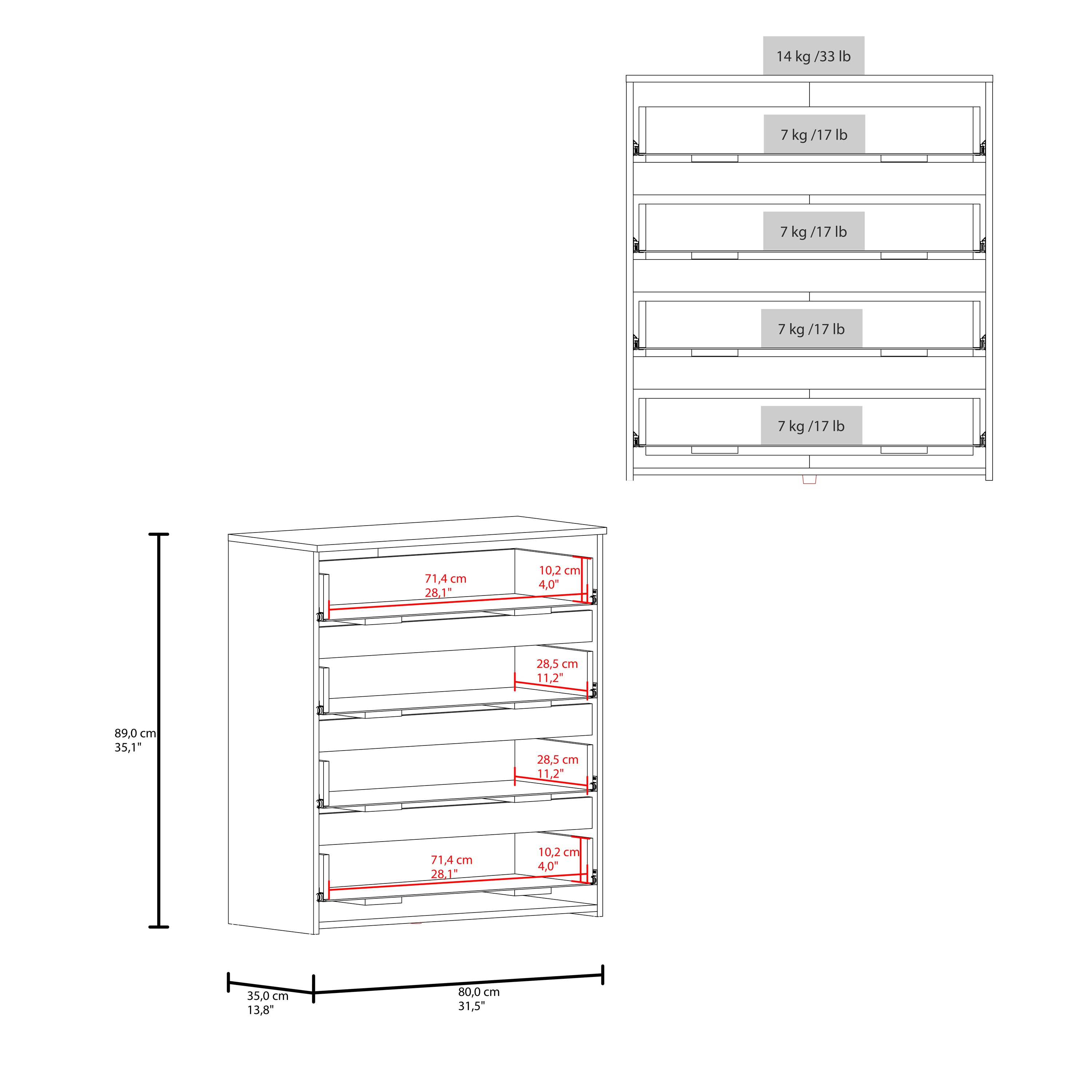 Drawer Dresser, looking for a stylish dresser to help organize your clothes? Check out the Aralia Drawer Dresser! This contemporary and rustic piece has four spacious drawers (4,01’’ H X 28,11’’W), making it easy to store and access everything you need. Additionally, the elegant design will look great in any room with a compact size. Designed with elegant black wengue-light oak and White-light oak manufactured wood finish.
