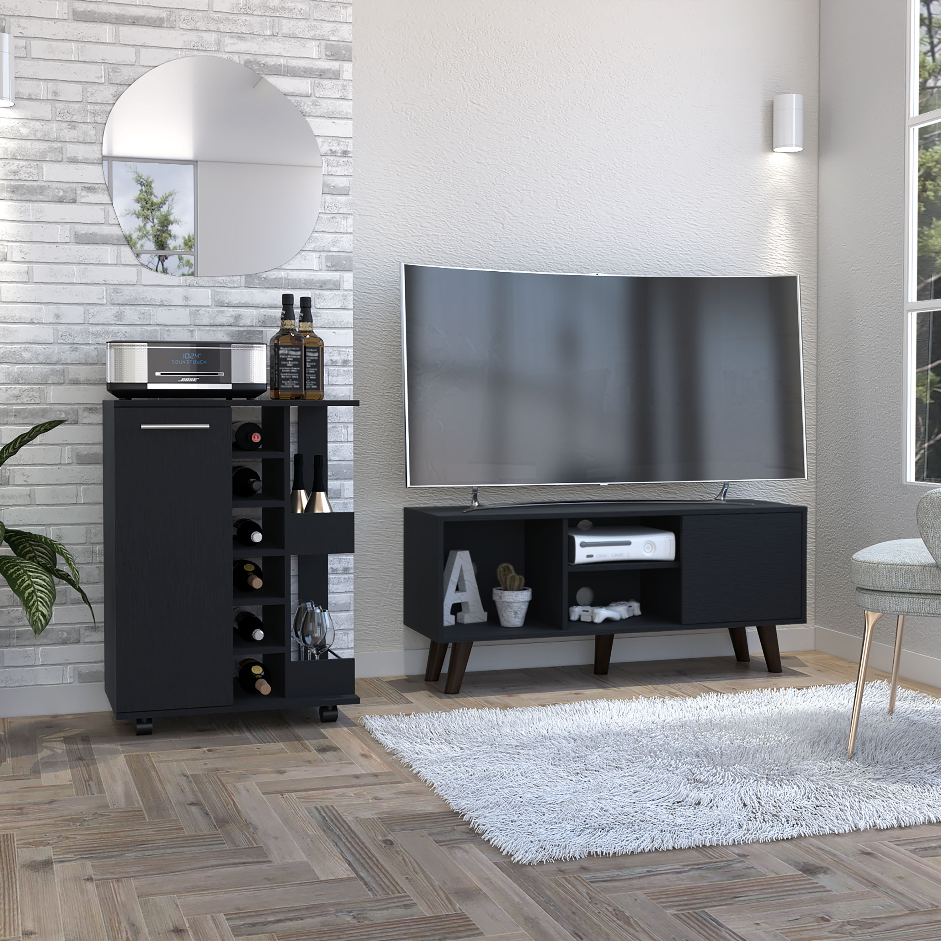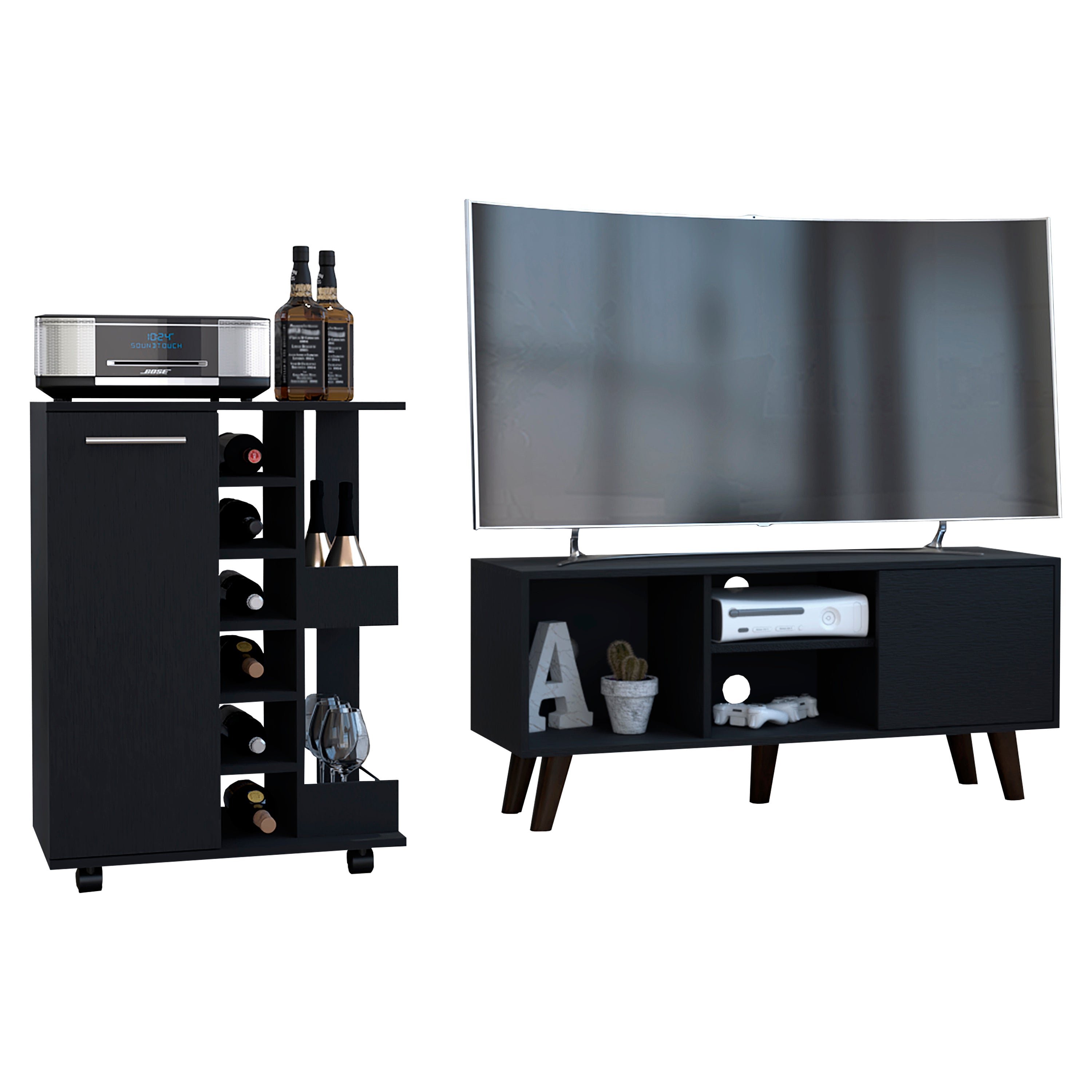 Chicago Two Piece Living Room Set, Bar Cart + TV Stand , Black