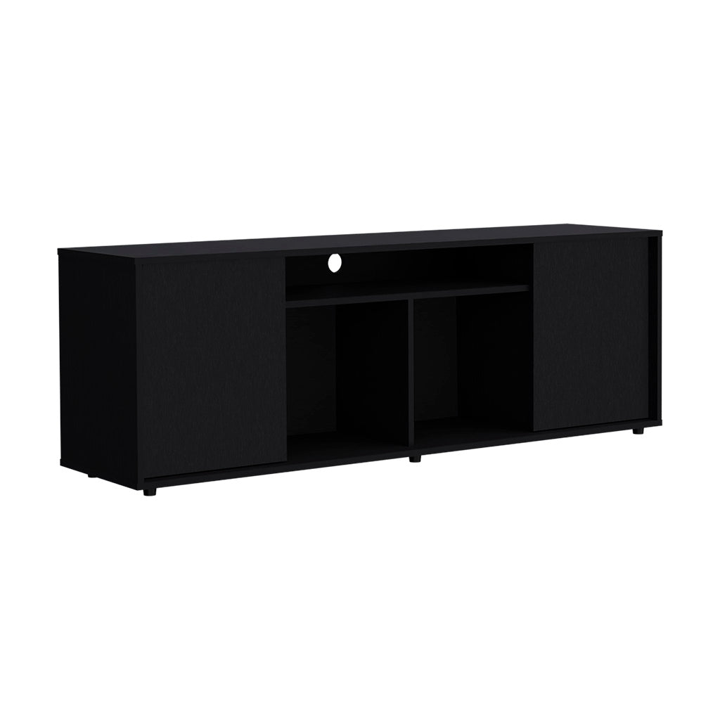 Dallas Tv Stand is the perfect unit to house your entertainment equipment. It features a sturdy design that can accommodate up to 65" TVs, three center shelves provide open storage options or décor space, and two-door panels provide private storage for your electronic components. Designed with elegant Black Wengue, Light Oak manufactured wood finish.