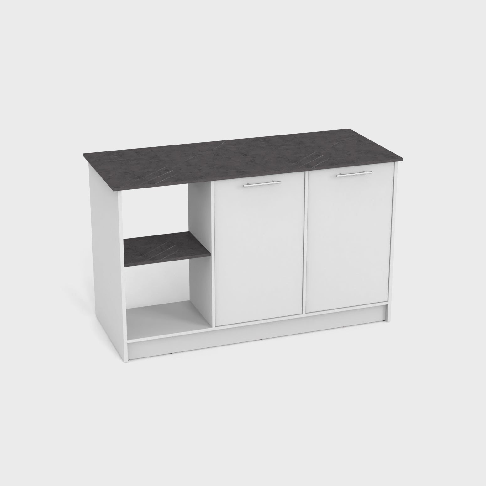 The Coral Kitchen Island is the perfect addition to your modern kitchen. Its large top surface (25.19 inches Deep x 59 inches Wide) and double-door cabinet with inner storage provides plenty of space to work and store your belongings. The white/light oak, black/macadamia, black/onyx and white/onyx manufactured wood finish gives it a stylish and contemporary look that will complement any kitchen décor.