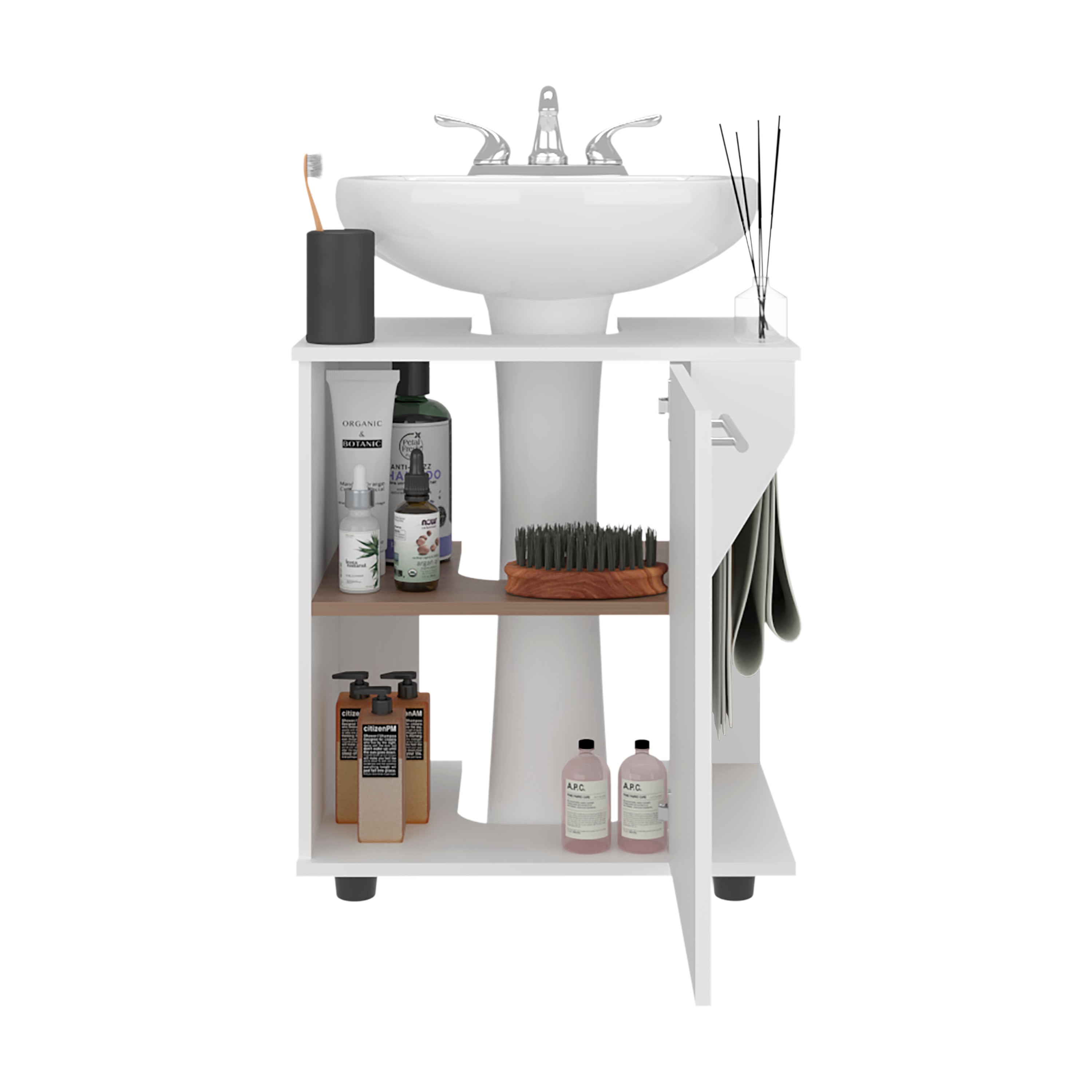 Enfield Under Sink Storage, 1 Door, 3 Shelves, 4 Legs