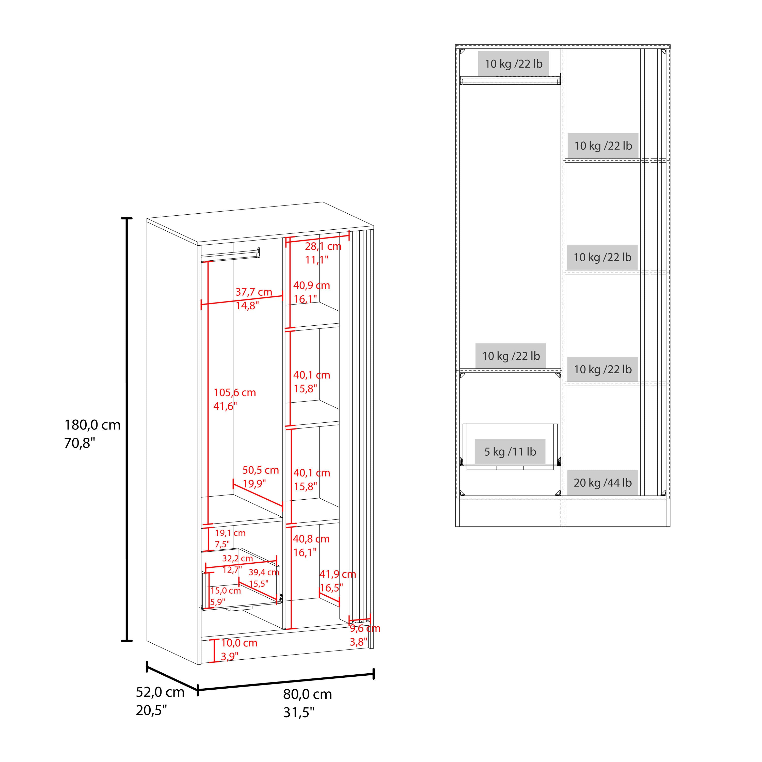 Ferndale Armoire, 1 Door, 1 Drawer, 5 Shelves
