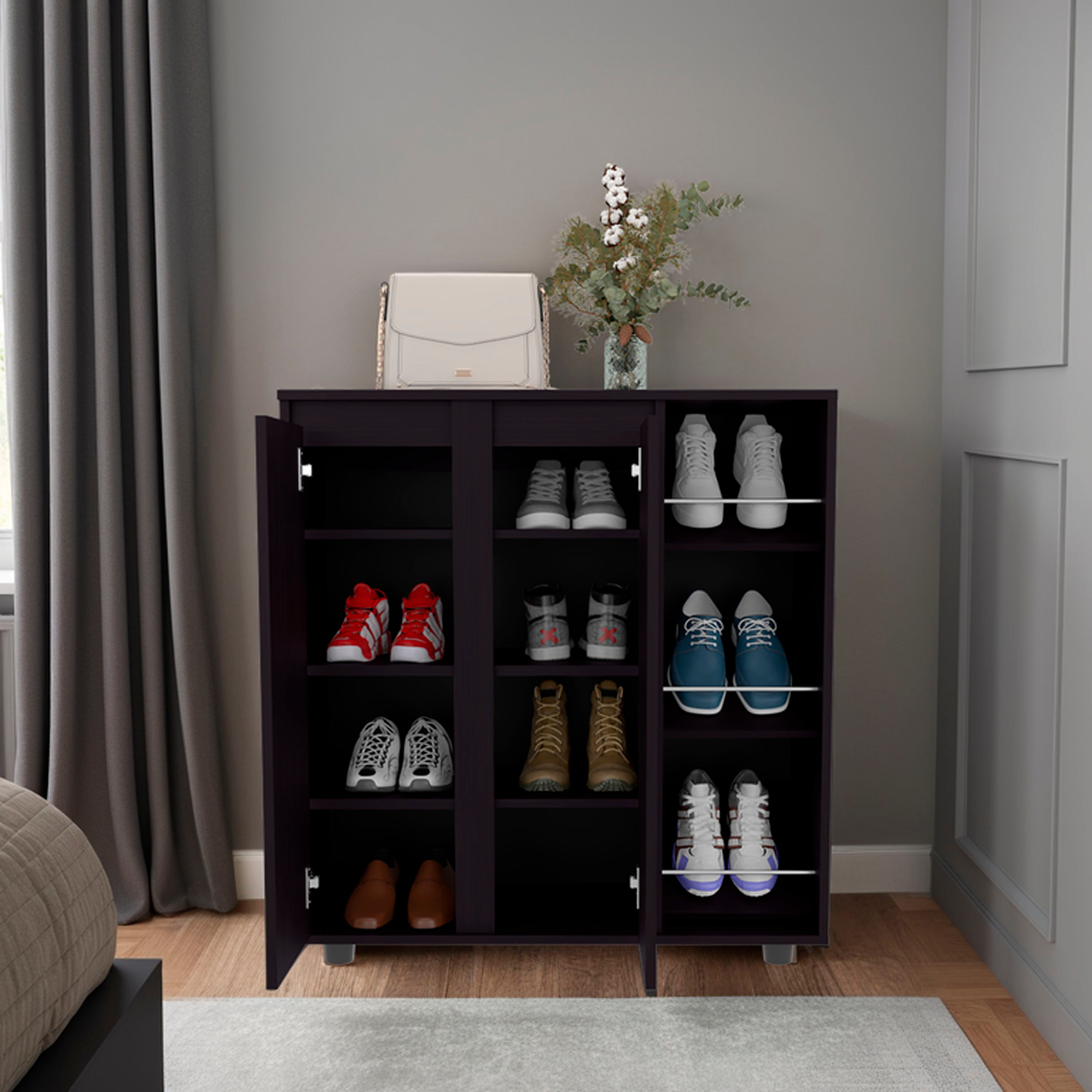 Flippin Shoe Rack, 2 Doors, 4 Shelves