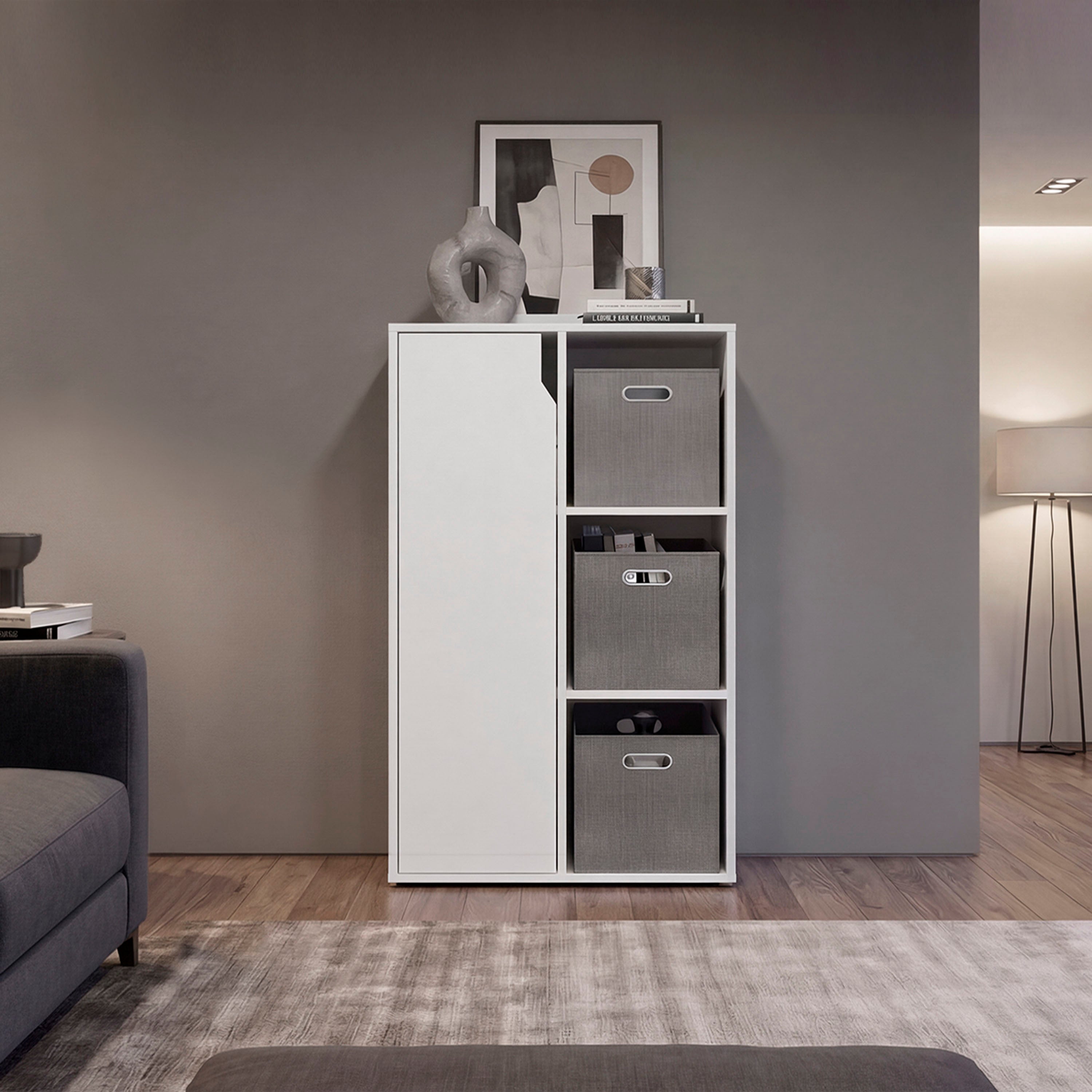 Enhance your home organization with the Medium Size Bookshelf, featuring 6 spacious shelves and 3 removable baskets for added storage flexibility. This versatile bookshelf is ideal for storing books, decor, and office supplies, all while maintaining a sleek, modern aesthetic. Constructed from durable engineered wood, it ensures long-lasting strength and a clean, minimalist look. Perfect for smaller spaces like apartments, bedrooms, or home offices, this bookshelf offers an efficient storage solution without overwhelming the room. The three baskets provide hidden storage for your personal items, while the open shelves let you display your favorite books, plants, or other decorative pieces. This functional and stylish bookshelf is easy to assemble and enhances the design of any room.