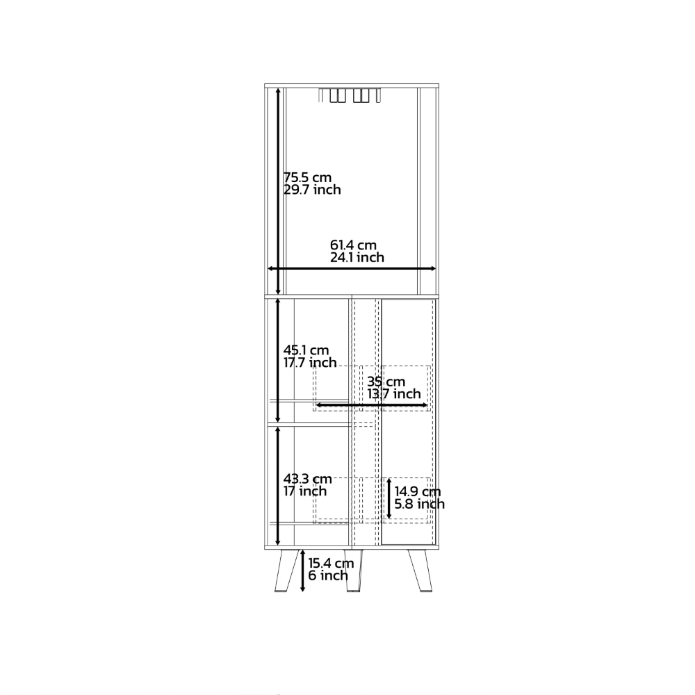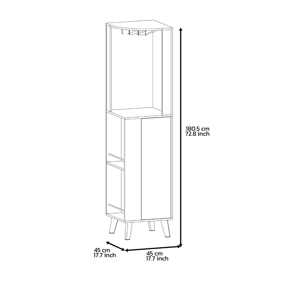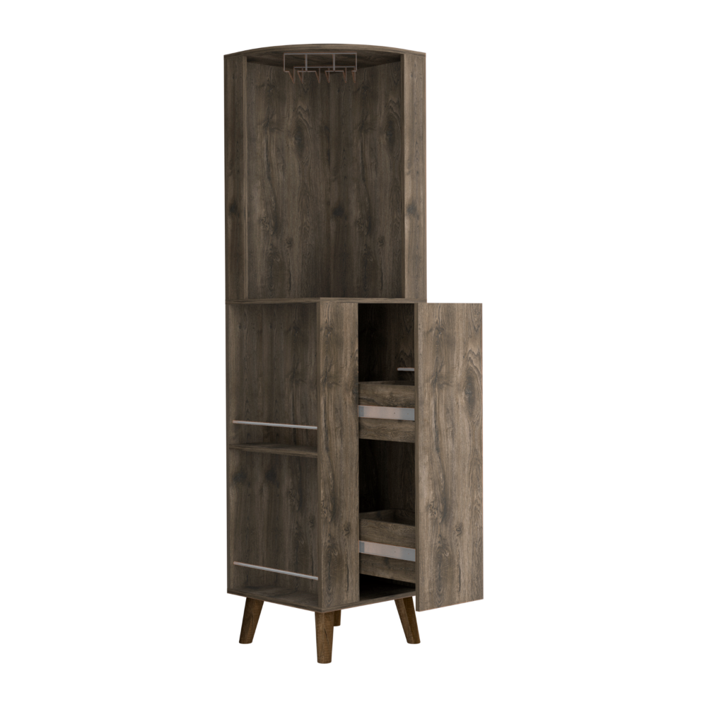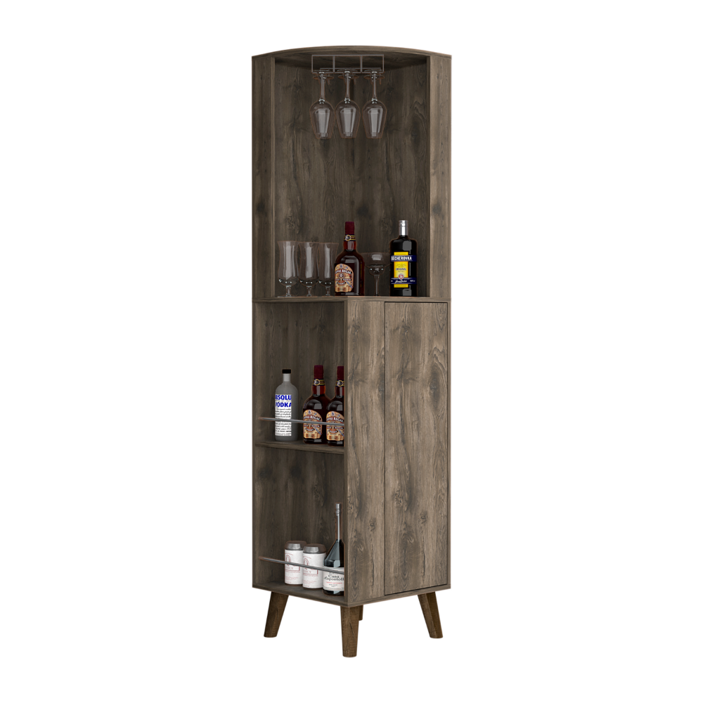 Jaipur Corner Bar Cabinet is the perfect way to add some character to your room while providing you with ample storage capacity. The large superior top shelf (17,72''W X 17,72' 'D) provides plenty of space for your bottles and glasses, while the drawer and two shelves provide additional storage for all of your other bar supplies. And with a cup rack included, you'll have everything you need at your fingertips. So, make your next party a smash hit and order the Haora Tall Corner Bar Cabinet today! It fits perfectly in that boring corner that needs an extra contemporary touch. Designed with an elegant dark brown manufactured wood finish.