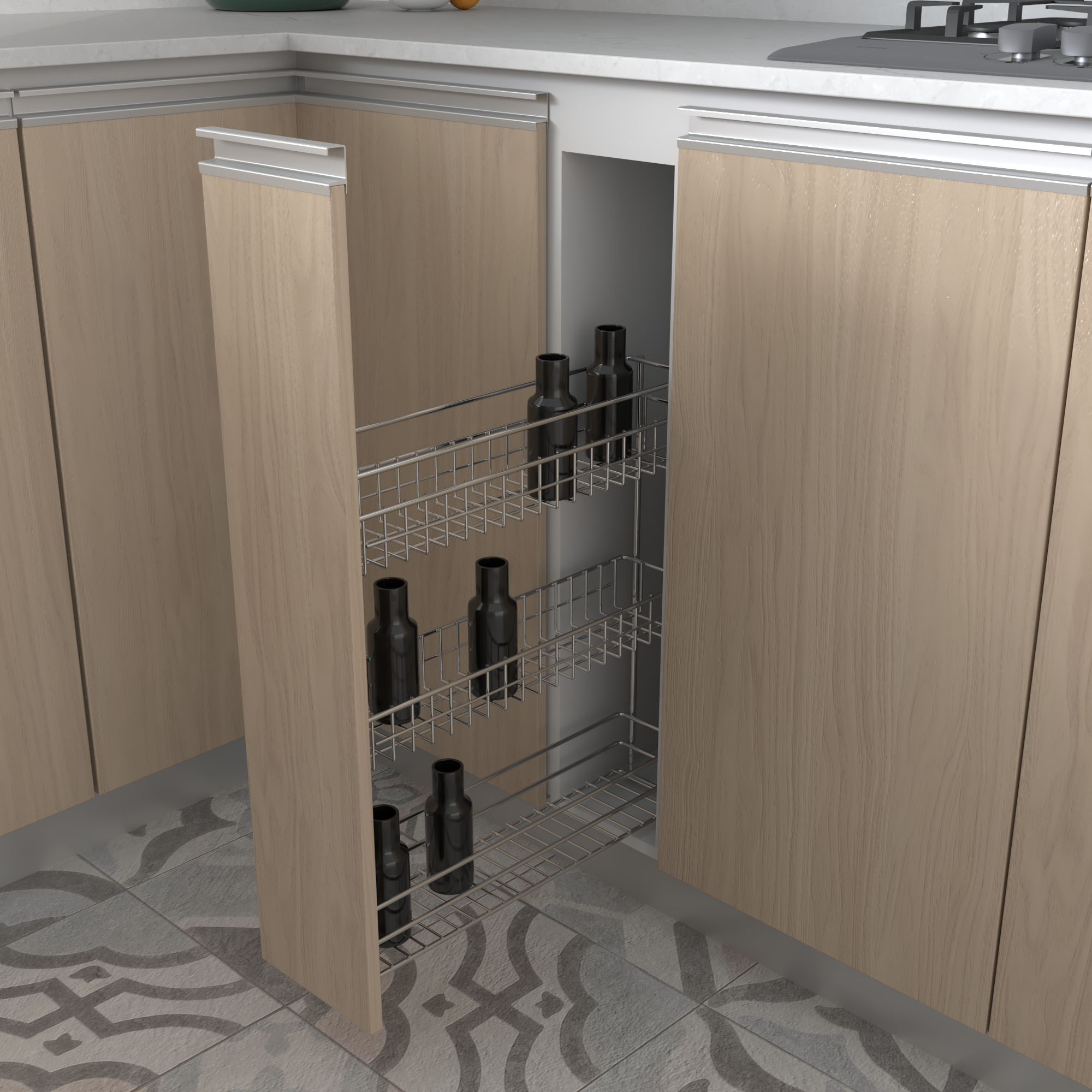 Kitchen Seasoning Rack Cabinet Pullout Organizer Soft Close, One Und,Silver