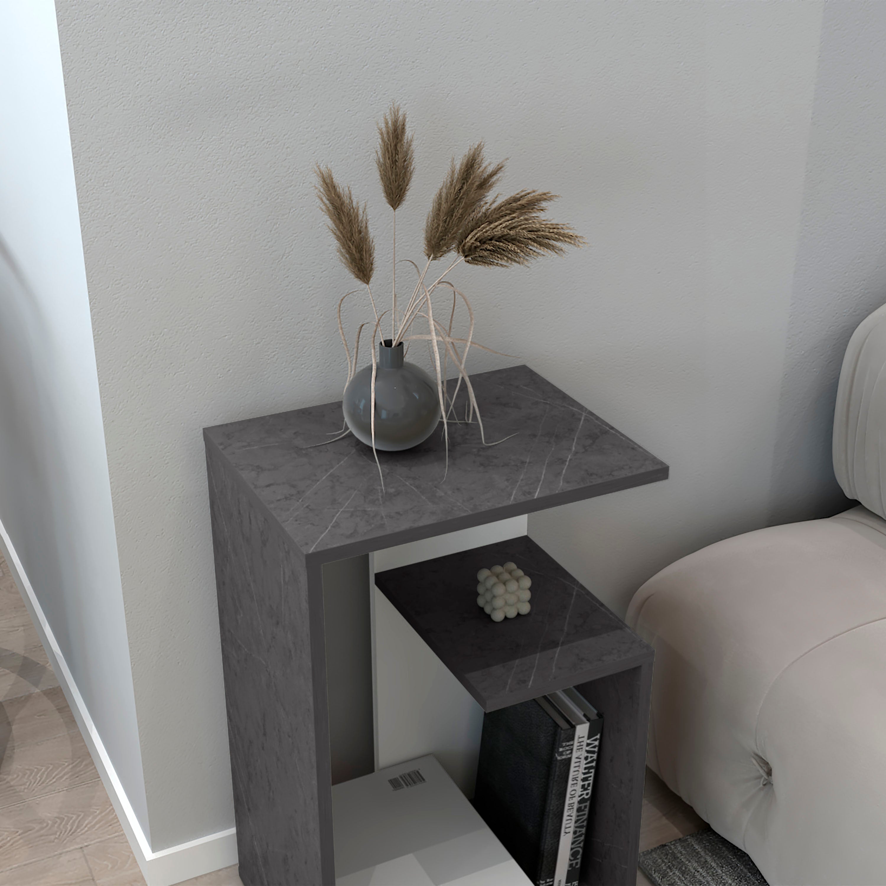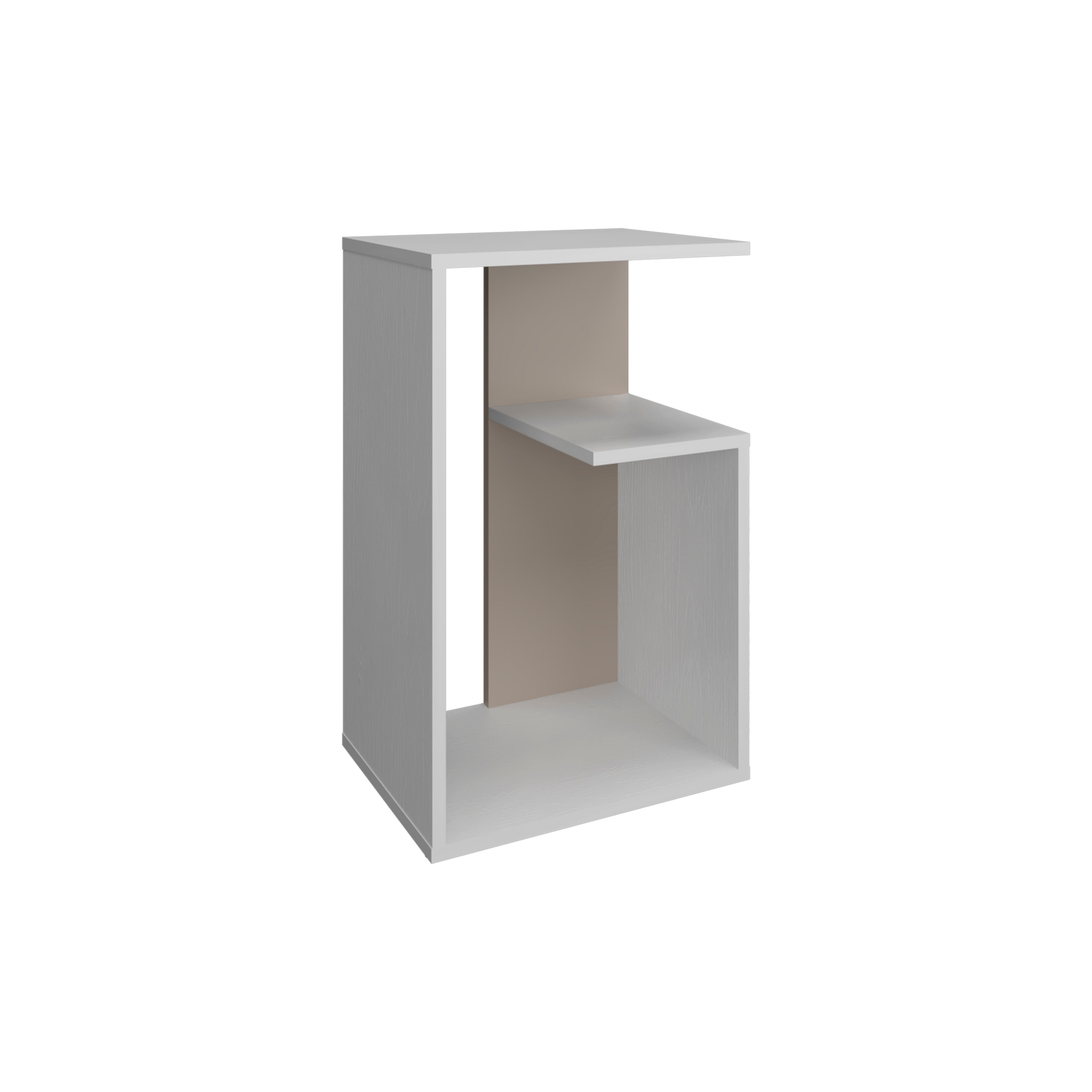 The Stebbins Side Table is a practical and modern addition to your living room or bedroom. With 2 open shelves, it offers convenient storage and display options for your books, decor, or essentials. Its compact design and clean white finish make it an ideal piece for small spaces, adding a touch of minimalist elegance to any room. Whether used as a bedside table or a living room accent piece, the Stebbins Side Table is a versatile and stylish solution.