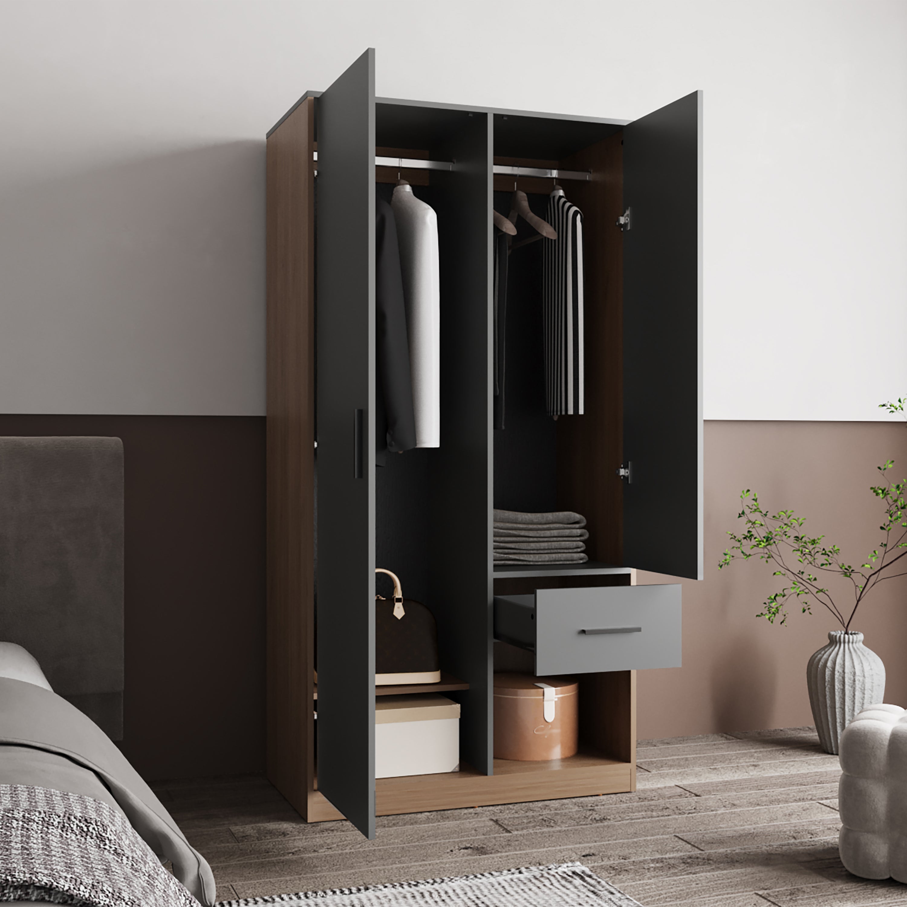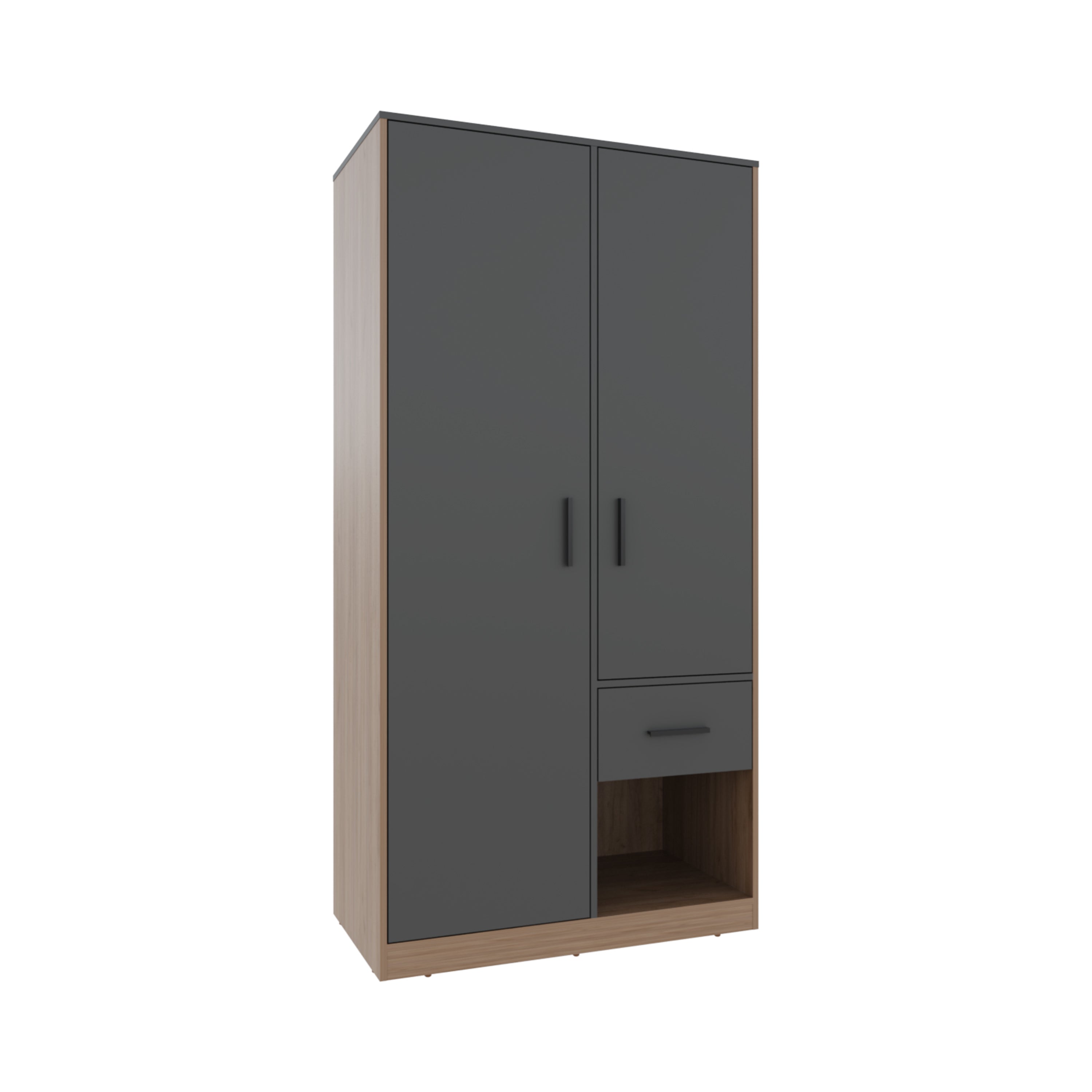 The Wanship Armoire is a versatile and stylish storage solution, perfect for organizing your bedroom. Featuring 2 doors, 1 drawer, and 2 shelves, this armoire offers ample space for clothing, accessories, and other essentials. Its sleek finish in matte gray and natural oak creates a modern and sophisticated aesthetic that complements any decor.